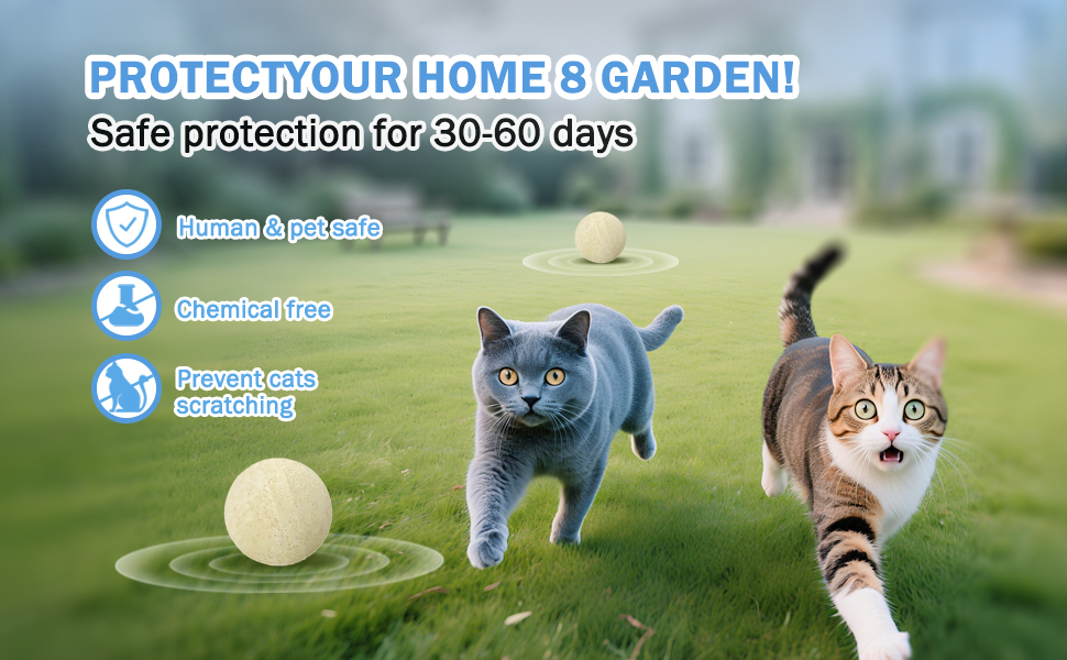 🐱【LONG LASTING EFFECTIVENESS】Our concentrated dog and cat repellents are newly formulated and individually packaged, each cat repellent ball has at least 3g of essential oils to provide a long-lasting scent that lasts for at least 15-20 days or more (please avoid moisture or rain soaking as much as possible) The cat Repellent balls can be used indoors (kitchen/garages/bar/barn/auto) to stop cats and dogs from peeing and destroying furniture.Used outdoors to prevent dogs from digging in the yard