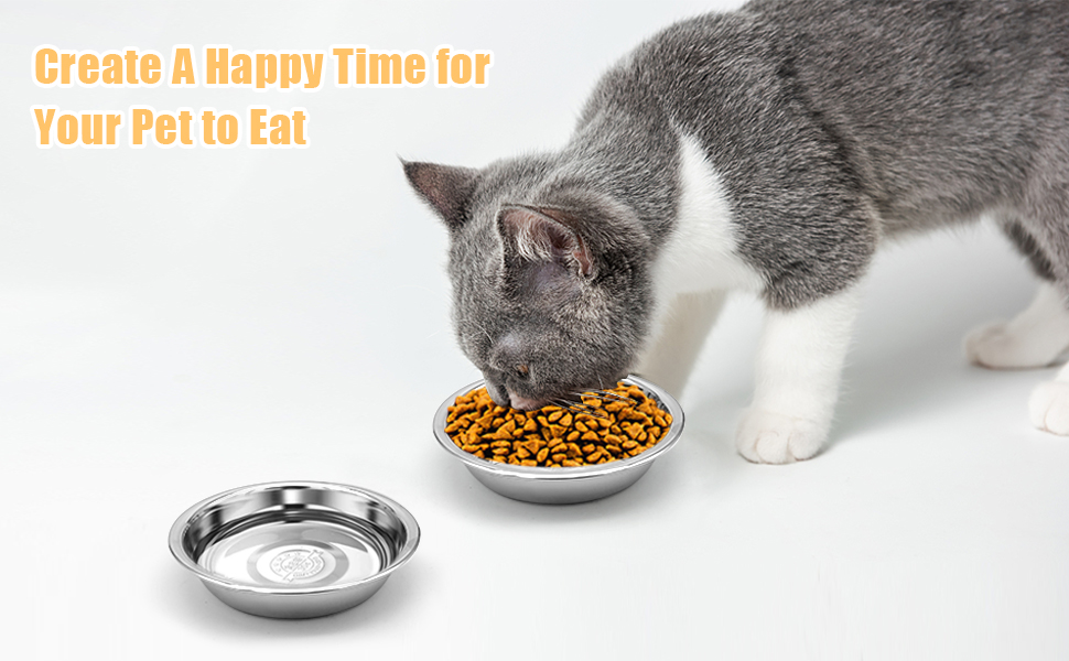 [Multifunctional Stainless Steel Cat Bowl]-The pet bowl can be used for drinking water, different dry and wet food, which can effectively avoid food adulteration and loss of the original taste of the food, resulting in the phenomenon of pet anorexia and less food; the size of 5.5inch is suitable for cats, Rabbits, small animals with short noses, animals with missing teeth, shallow cat bowls can help prevent overeating by limiting the amount of food your cat can get at one time.