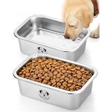 Perfect Design: The heavyweight dog food bowl won't spill or slip, get these for dogs that like to push their bowl around. The metal dog bowl is deep enough to keep food and water in the bowl. The large surface area of the bowl with a wide opening is very convenient for you to add food or water to your dog at any time, and suitable for multiple dogs to eat together.