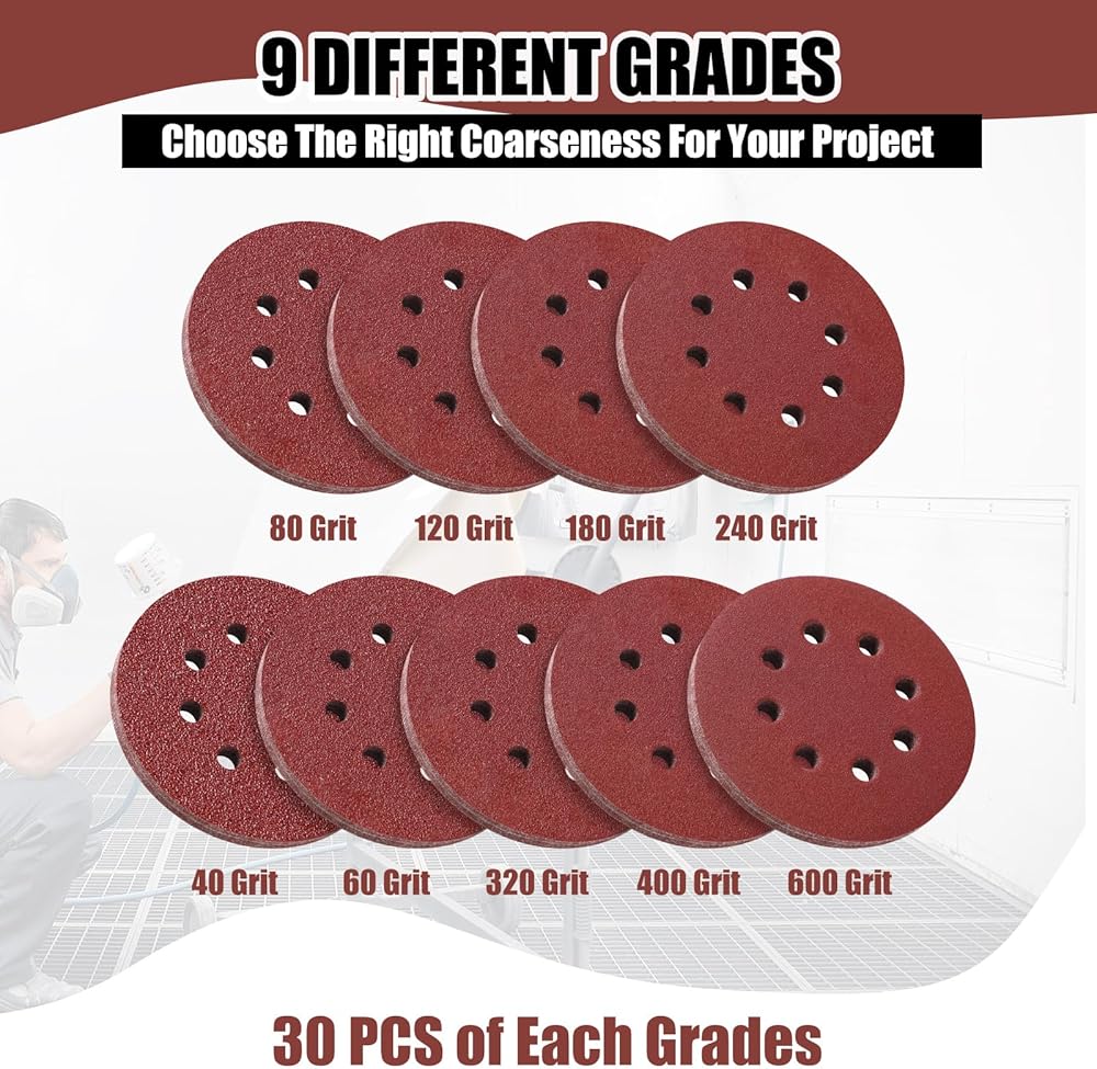 270 Pieces 8 hole hook and loop sanding discs (30 pieces per grit)