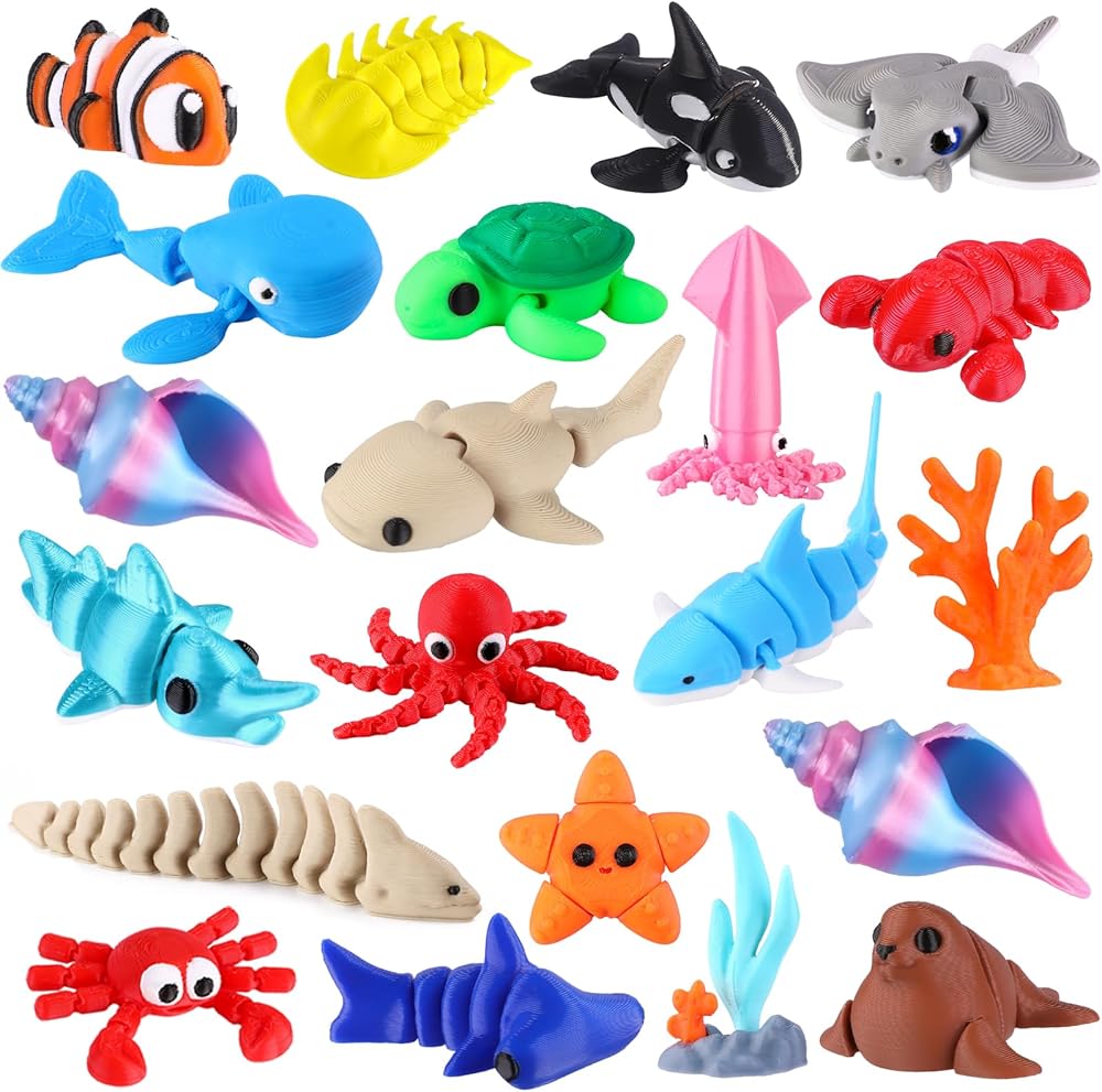 21Pcs Mini 3D Printed Animals for Kids Little 3D Printed Ocean Figurines for Goodie Bags Party Favors Flexible Articulated Fidget Toys for Classroom Prize Rewards Gifts Exchange