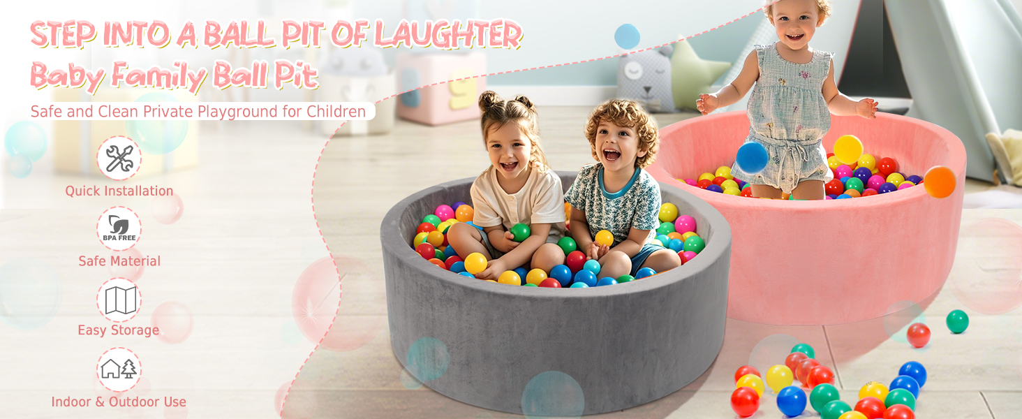 *Gift-Perfection for Toddlers*A Playground in a pool,the most desired gift for both boys and girls. ball pit can create a children's playground of his own. The ball pit can also be used as a gift for special occasions such as holiday gatherings, baby parties, Christmas, etc. Colorful balls can stimulate children's senses and encourage interaction, making it a wonderful moment.