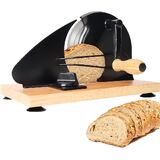 【Adjustable Thickness Bread Slicer (0-0.9") 】Food-grade stainless steel serrated blade and clear scale lines deliver uniform slices for sourdough, bagels, and sandwiches. Ergonomic hand crank supports right/left-handed use, making slicing 50% more efficient than traditional knives.