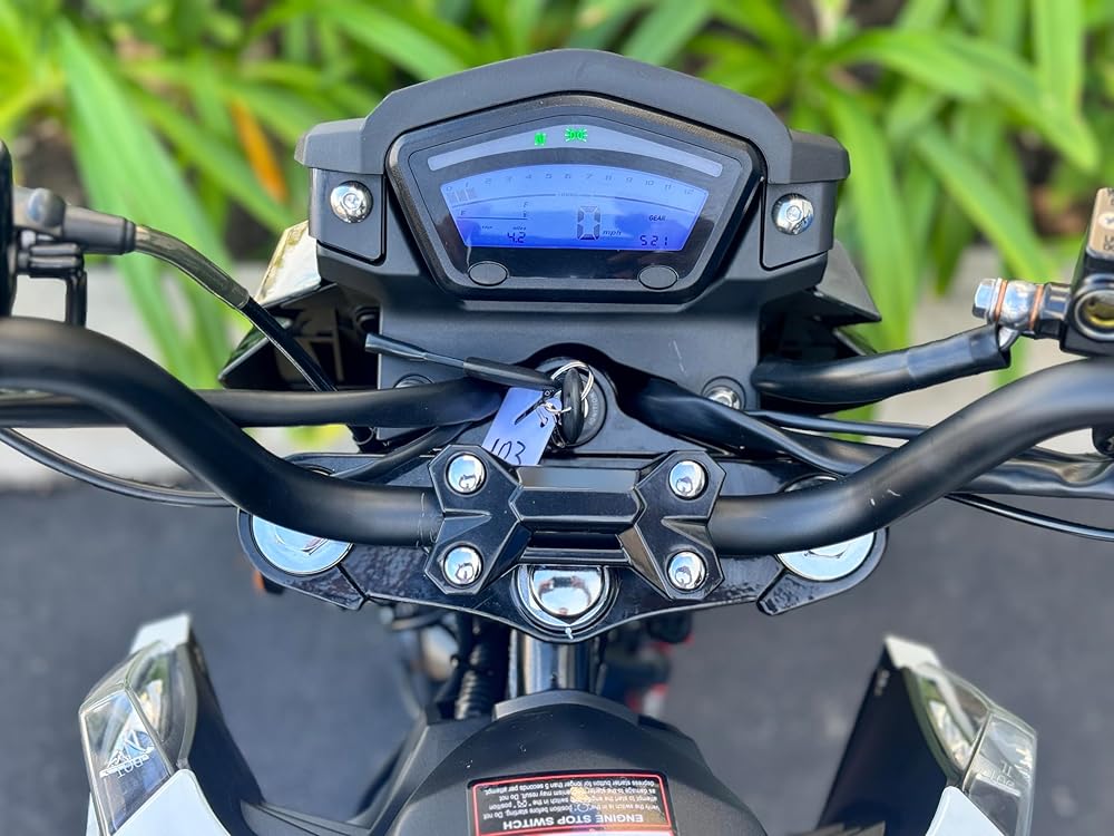 Lightweight Design: With a dry weight of just 265 lbs, this motorcycle is agile and easy to maneuver in city traffic. New Modern Design LED Headlight and Foldable Foot Pegs.