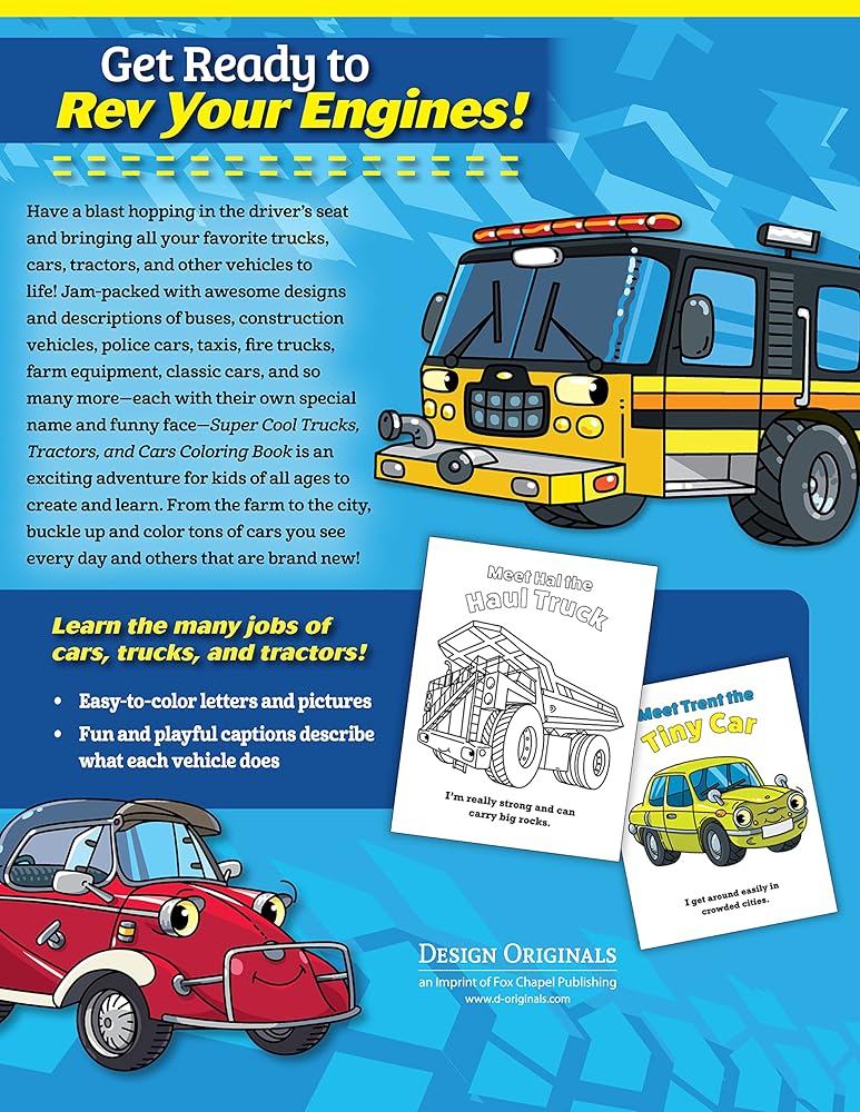 Mom and DadSuper Cool Trucks, Tractors, and Cars Coloring Book is the perfect gift for kids to have fun and encourage their creativity!