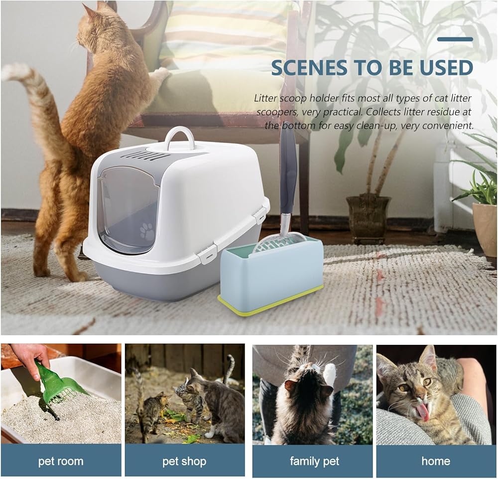 Core Functionality: the Ipetboom cat litter scoop holder features a universal design that fits most cat litter scoopers, effectively collecting litter residue at the base to simplify cleanup and maintain a tidy litter area