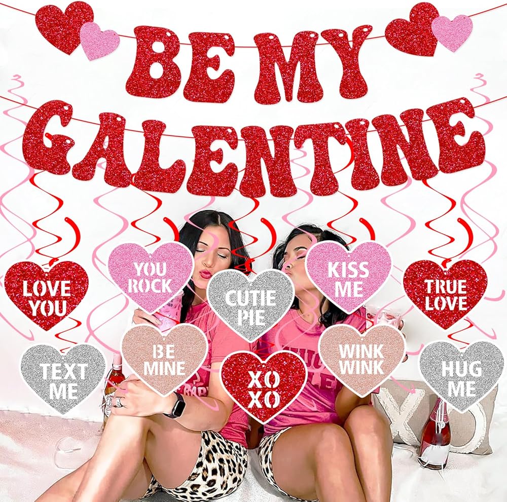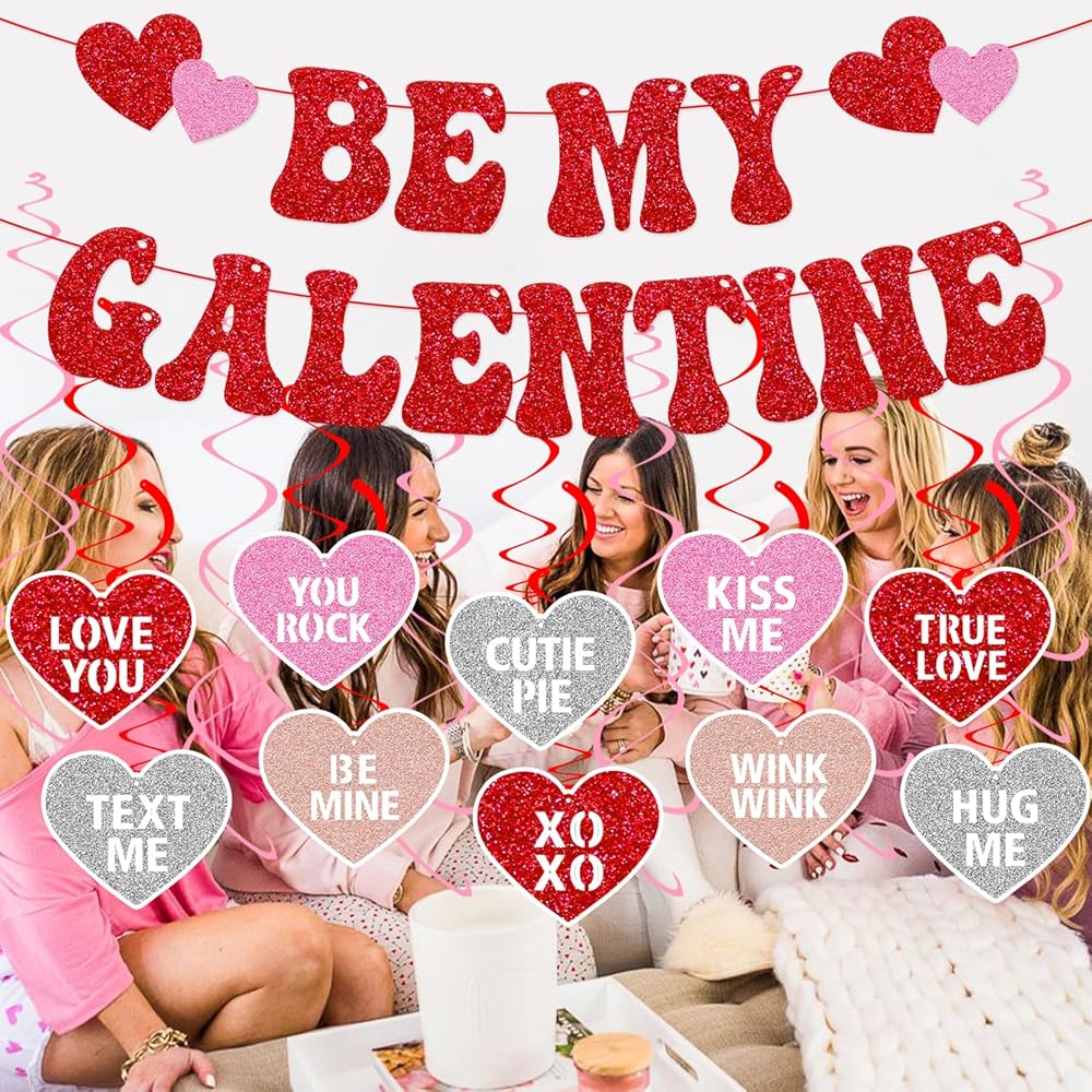 Be My Galentine Banner Happy Galentine’s Day Decorations for Ladies Girls Galentine’s Day Celebration Party Decor Romantic Valentine’s Day Hanging Swirls Party Supplies