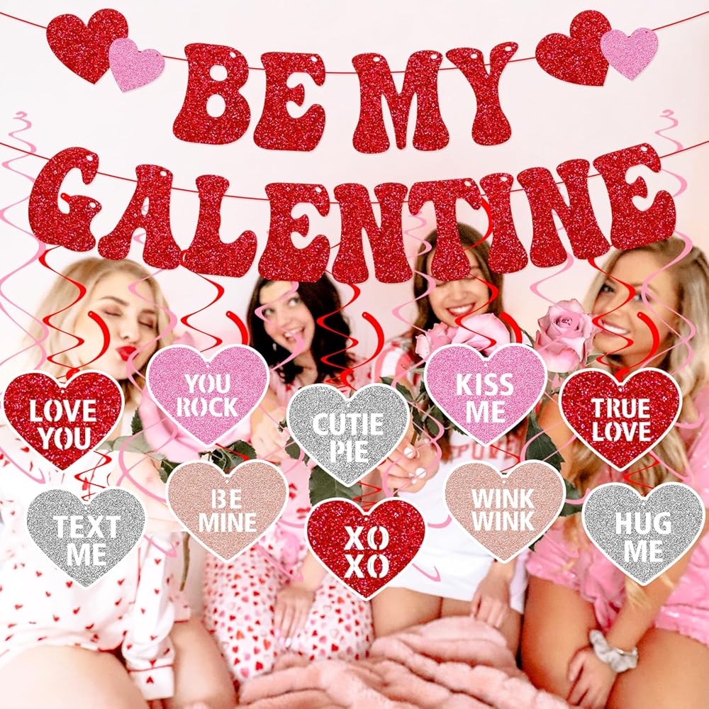 • FESTIVE DESIGN: Glittery 'Be My Galentine' banner features sparkling red letters perfect for Valentine's Day celebrations and friendship parties