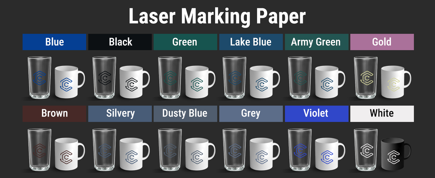 2️⃣【Works on Metal, Glass & Ceramic Surfaces】 Designed for surfaces that cannot be directly engraved by many laser types, this marking paper allows you to create crisp, high-contrast patterns on stainless steel, glassware, tiles, and ceramic crafts. A perfect solution when direct engraving isn't possible.