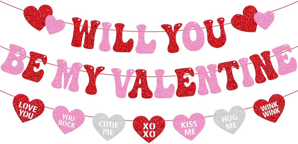 Will You Be My Valentine Banner Be My Valentine Theme Garland Happy Valentine’s Day Banner Glitter Pink Red Valentine’s Day Decorations Engagement Wedding Anniversary Party Supplies