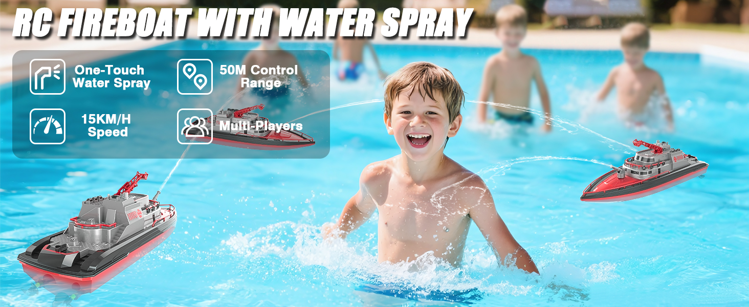 Perfect Gift for Kids & Families: With its One-Touch design and durable build, the fireboat RC boat makes a memorable holiday or birthday gift. It's easy to learn yet exciting to race, ideal for boys and girls and even adult hobbyists looking for outdoor fun.