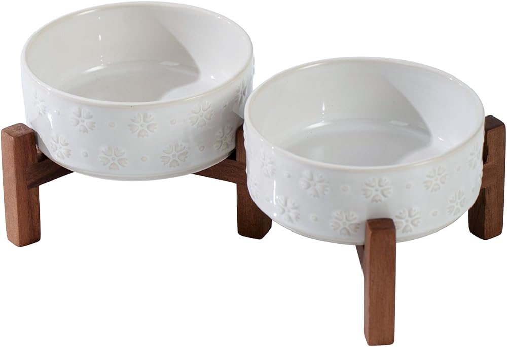 Acacia Wood Stand: Adopting with classy acacia wood stand, this aesthetically pleasing ceramic dog bowls with stand fits perfectly with any home decor style. By flipping the stand over , you can get 2 different heights to hold the pet bowl. Let‘s elevated bowl company with your pet in different growth stages.