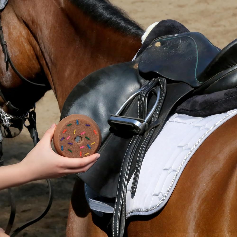 This multi purpose equestrian sponge is ideal for cleaning equestrian equipment, saddles, reins, riding boots, and riding gear. The donut-shaped design provides a comfortable grip and is suitable for both professional and everyday use.