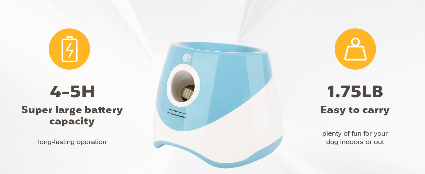 Rechargeable Convenience: The automatic ball launcher for dogs has a built-in 2200 mAh rechargeable battery, which can be played for 5-6 hours after being fully charged. It is recommended to fully charge before use. Give your dog hours of ball-fetching fun with our automatic ball launcher
