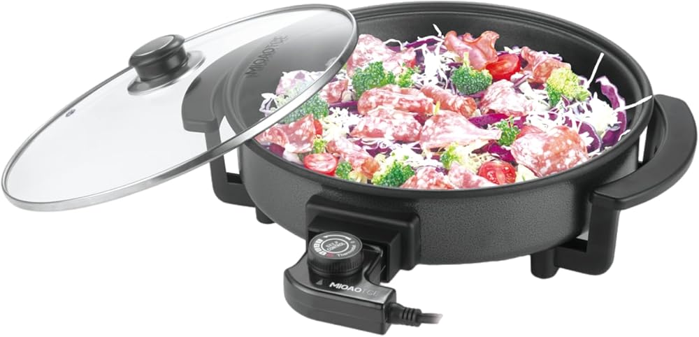 【Clear Tempered Glass Lid & Secure Cooking】The included tempered glass lid locks in heat, moisture, and flavor for more delicious results. Its durability withstands high heat and steam, while the clear design lets you monitor your food's progress without lifting the lid and losing temperature, a key feature of this complete electric frying pan with lid set.