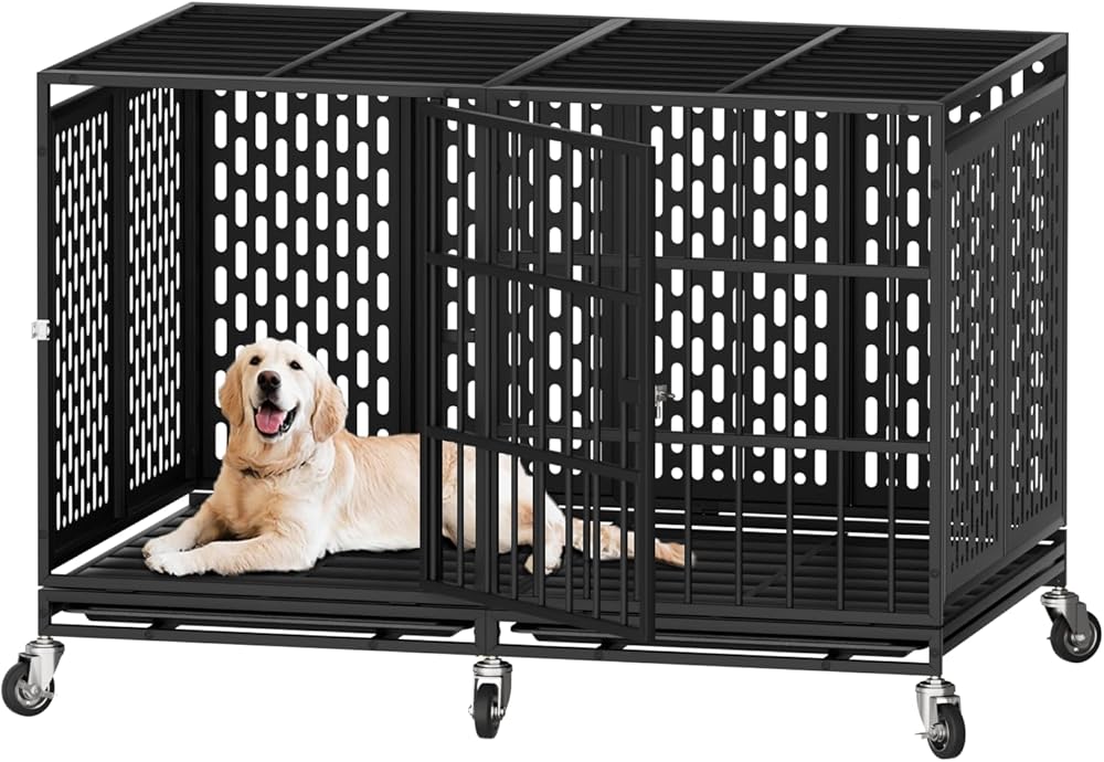 Sturdy Metal: 48 Inches heavy duty dog crate uses a high-strength metal construction, much stronger than fine wire cages. This is a very sturdy large dog crate, even for strong and powerful dogs.Maximum load capacity up to 400 lbs