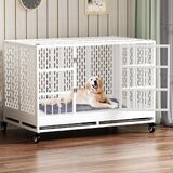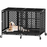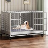 54/48/42/38 Inch Heavy Duty Dog Crate with Wheels, Metal Big Dog Cage for Large and Medium Dogs, Extra Large XL XXL Indestructible Dog Crate with Removable Tray.