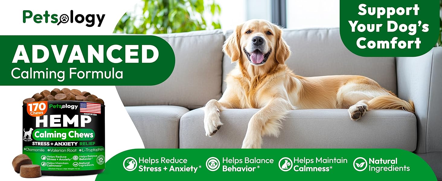Behavior Support & Mood Balance: These dog anxiety chews help calm hyperactive dogs, reduce aggression, and improve focus for a balanced pup. Ideal for stress from vet visits, grooming, or travel.
