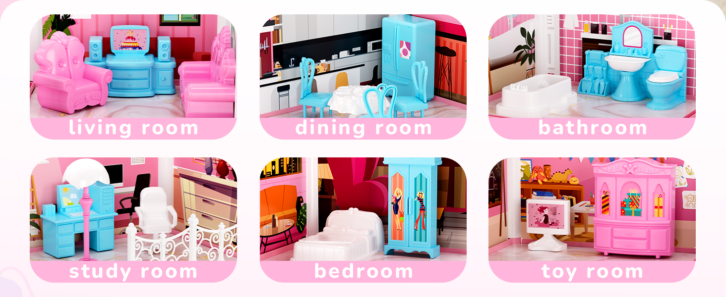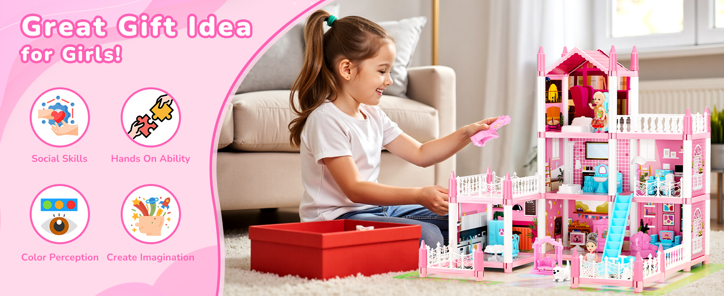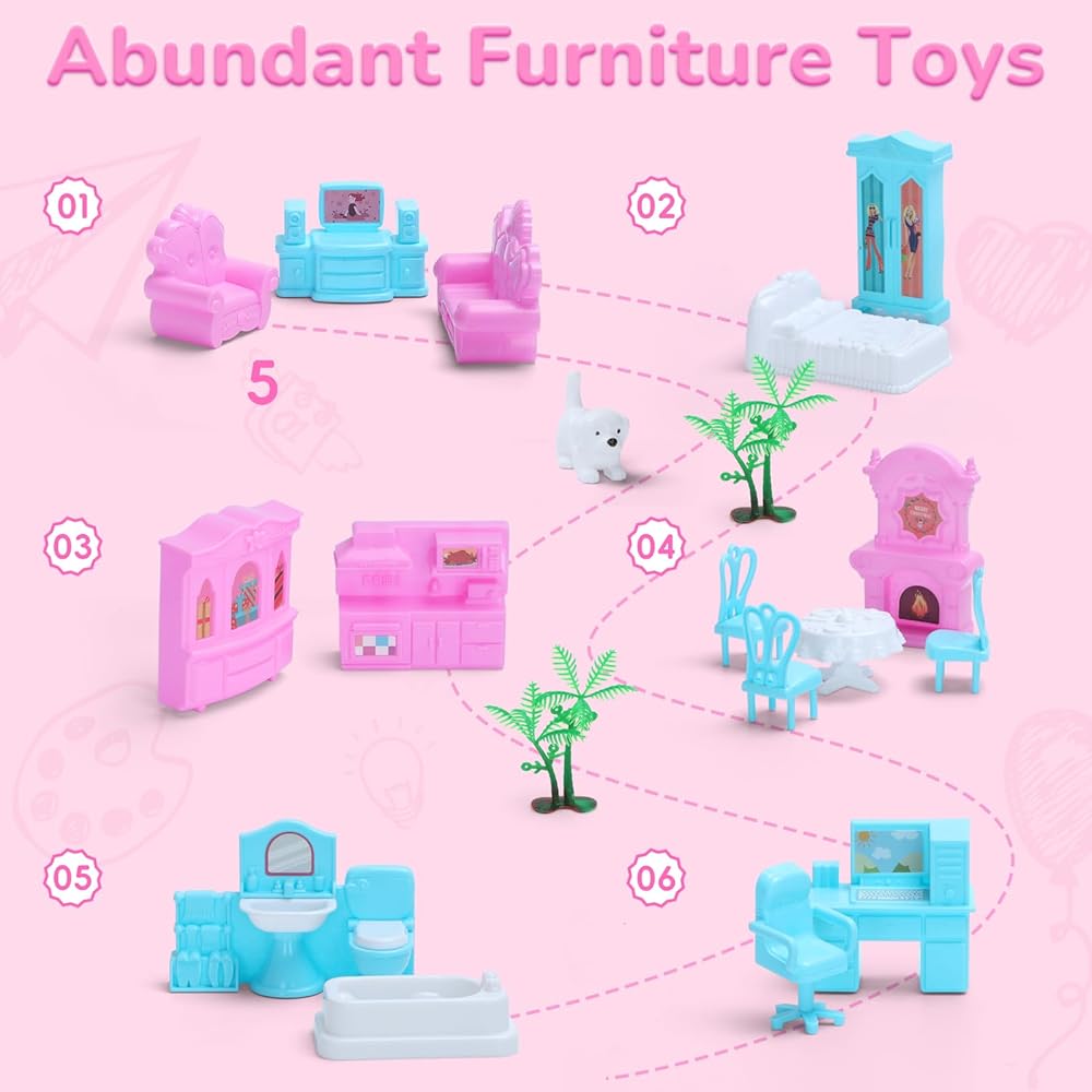 【Strong & Premium Material】 - The toddler doll house is made of BPA-free, non-toxic ABS plastic, high quality and safe materials. Sturdy and durable enough for your kids to use time and time again. Come build a dream home