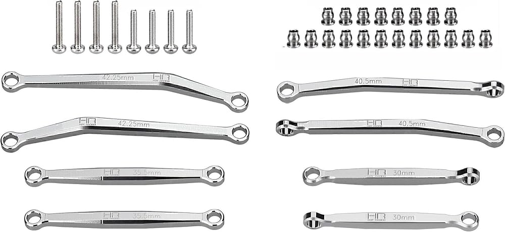 Hot Racing No Flex optional upgrade 6061-T6 4 link set for Axial SCX30 vehicles.