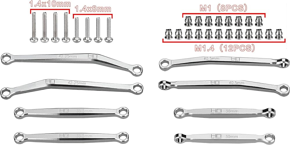 Add increase durability to your SCX30 with LWB by upgrading your stock plastic links with the Hot Racing aluminum link kit.