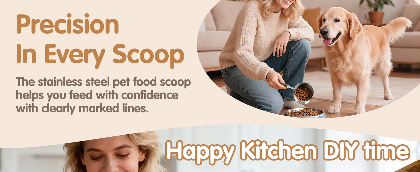 Durable Stainless Steel Pet Food Scoop: Built from heavy-duty stainless steel that much more reliable than plastic scoops—resists bending or breaking. Perfect for daily use scooping dog food, cat kibble or kitchen uses.