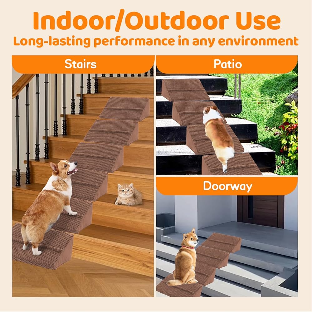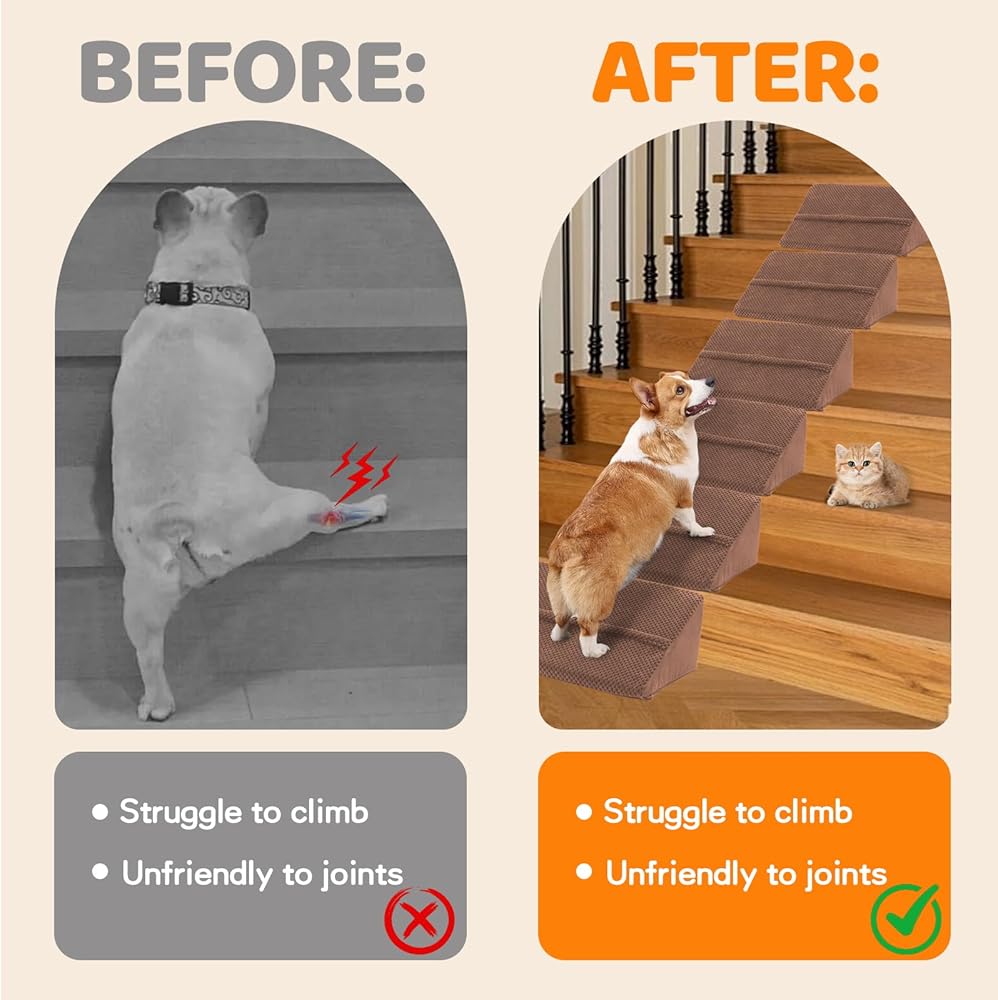 2026 Update New Design Stairs Convenient for Any Home Staircase: We have a total of 6 small stairs that you can place directly on the stairs at home, making it convenient for dogs and cats to climb up and down the stairs,With this soft staircase pad on the stairs, it is very friendly to dogs' feet. If a dog or cat has a foot injury, stepping on it will be soft and fluffy. If you have stairs at home, we recommend that you purchase this innovative small staircase
