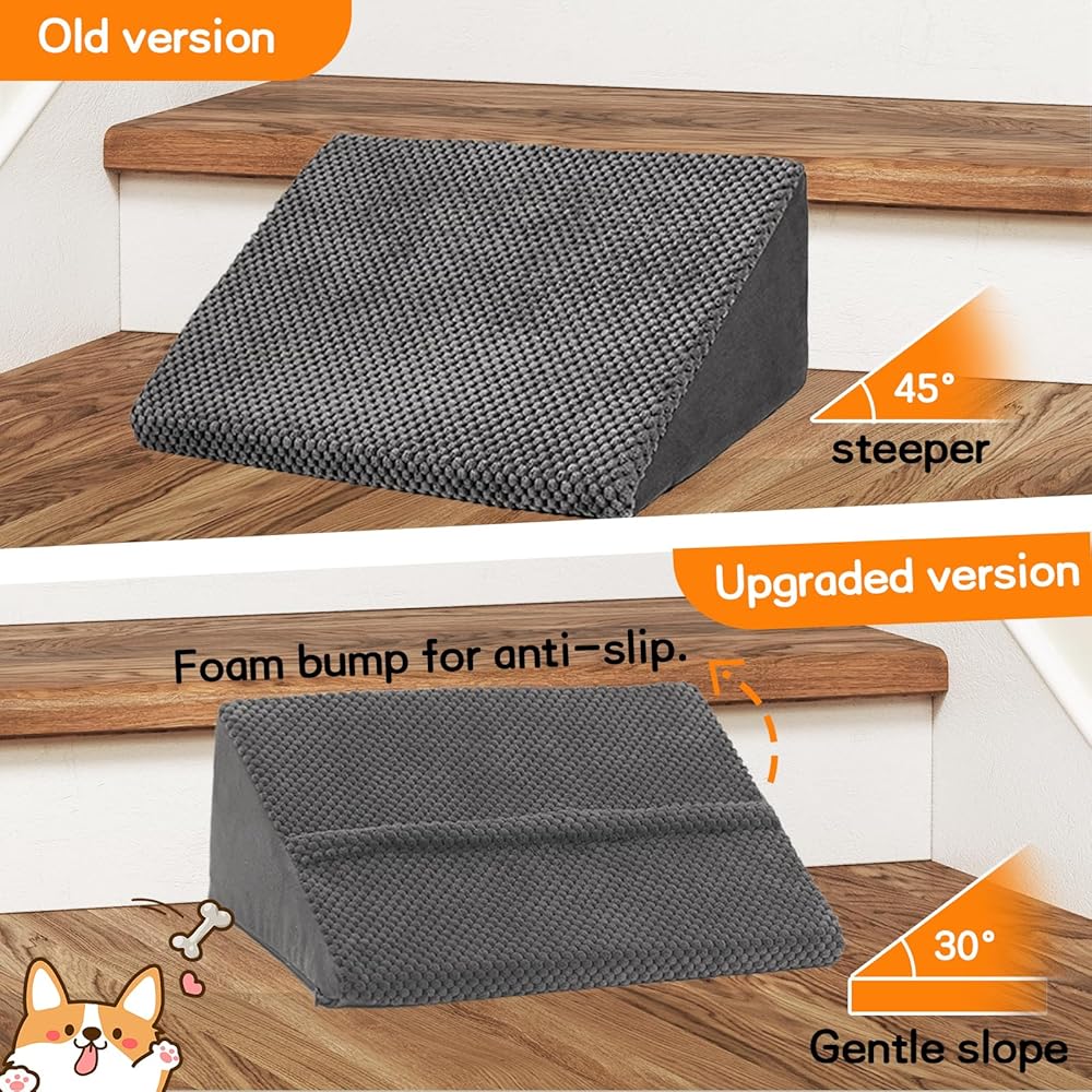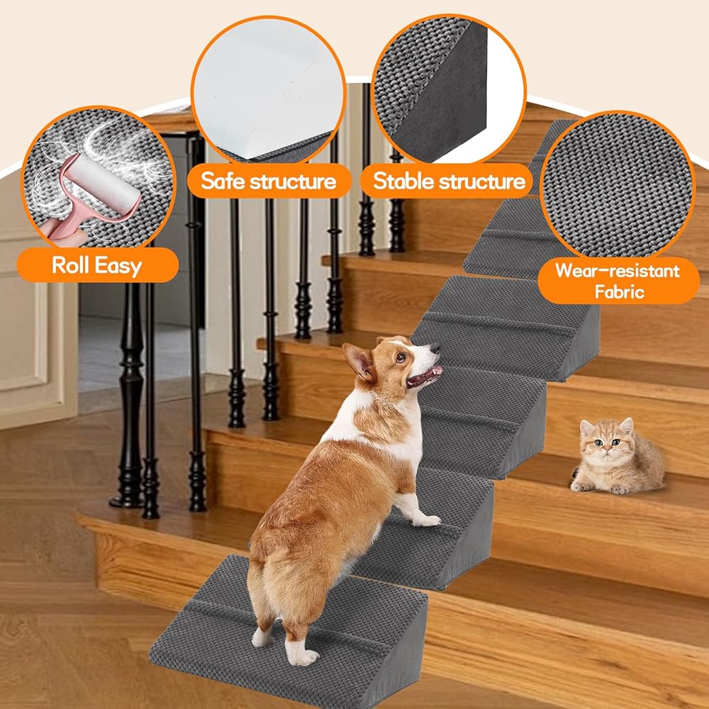 2025 Update New Design Stairs Convenient for Any Home Staircase: We have a total of 6 small stairs that you can place directly on the stairs at home, making it convenient for dogs and cats to climb up and down the stairs,With this soft staircase pad on the stairs, it is very friendly to dogs' feet. If a dog or cat has a foot injury, stepping on it will be soft and fluffy. If you have stairs at home, we recommend that you purchase this innovative small staircase