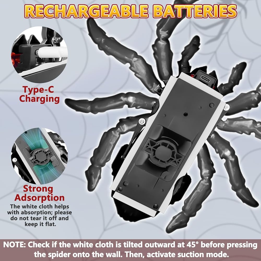 • 🔋 وقت تشغيل قابل لإعادة الشحن ويدوم طويلاً: مزود ببطارية مدمجة قابلة لإعادة الشحن، يوفر هذا العنكبوت الزاحف على الحائط ما يصل إلى 30 دقيقة من وقت اللعب لكل شحنة. يجعل كابل USB المتضمن عملية إعادة الشحن سريعة وسهلة، مما يقلل الحاجة إلى بطاريات تستخدم لمرة واحدة مع ضمان الحد الأدنى من وقت التوقف عن العمل بين جلسات اللعب.