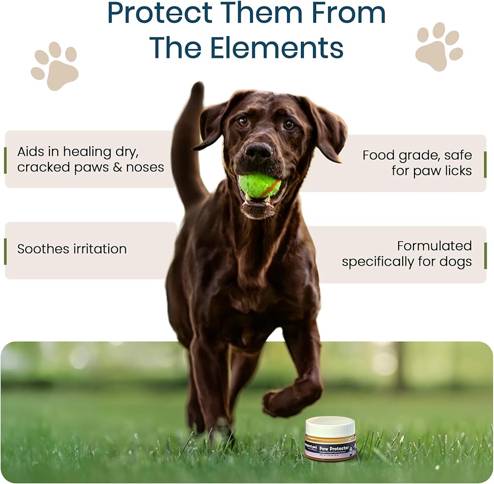 Soothing Moisturizer: Creates a breathable shield against hot pavement, icy winter sidewalks, salty roads, or rough terrain while nourishing paws with jojoba oil, vitamin E, and sea buckthorn