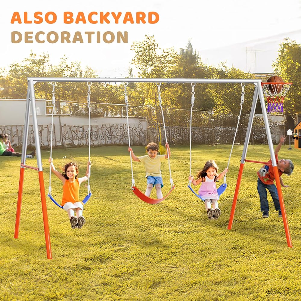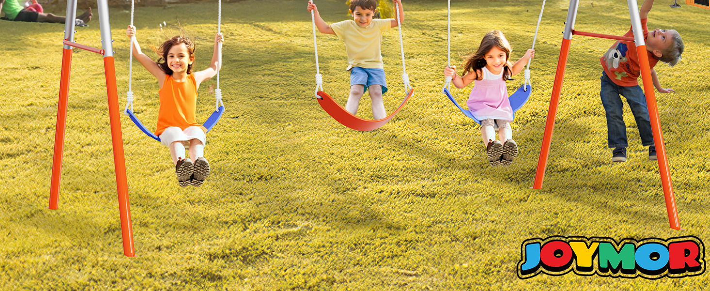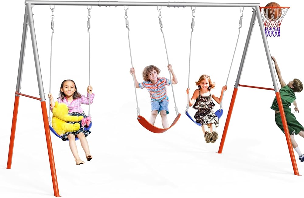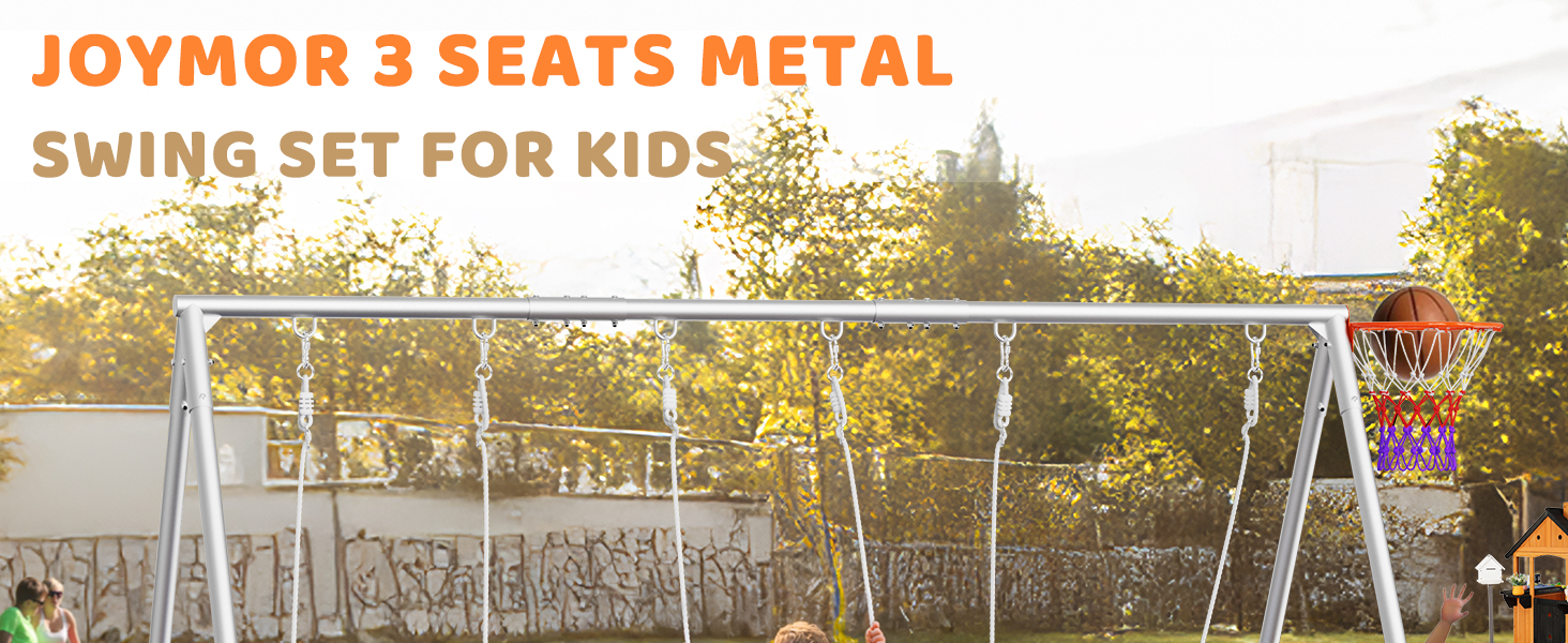 【Heavy-Duty Steel Construction】The swing frame is made of extra-thick steel (1.5mm), capable of supporting up to 3 children weighing 165 lbs each (tested in real-life scenarios).