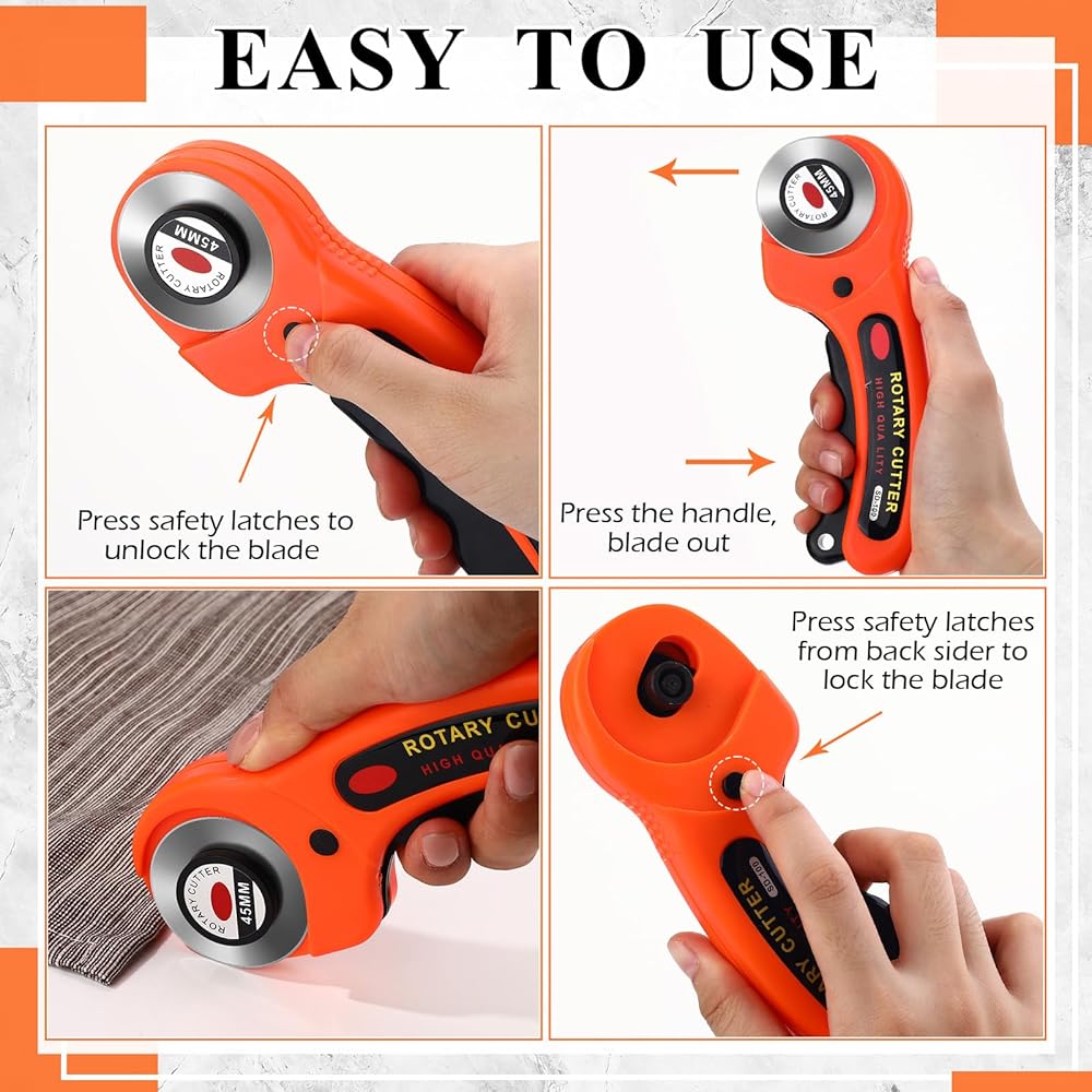 Our circular quilting blades are crafted from high-grade steel, ensuring resistance to breaking or bending and providing a wear-resistant, sharp edge that makes cutting effortless. The ABS plastic handle offers a comfortable grip, enabling prolonged use without discomfort.