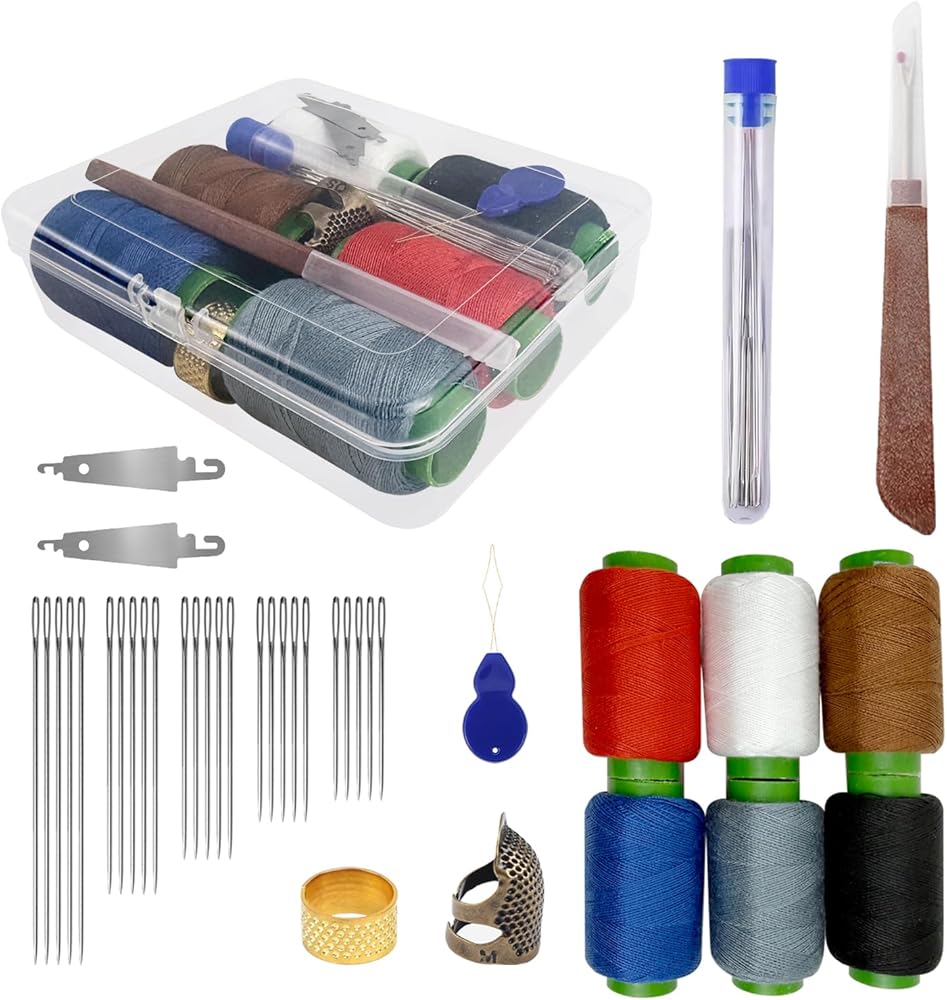 Big Eye Steel Sewing Needles Kit: Big eye steel needle set is a practical home sewing kit suitable for everyday garment repairs, DIY fabric crafts, embroidery, and more. Stainless steel sewing needle kit includes a transparent storage case containing 25 steel needles in 5 different sizes, 6 spools of sewing thread in assorted colors, 2 different thimbles, 3 needle threaders, and a seam ripper. This sewing kit for beginners is user-friendly, fully equipped, and simple to use