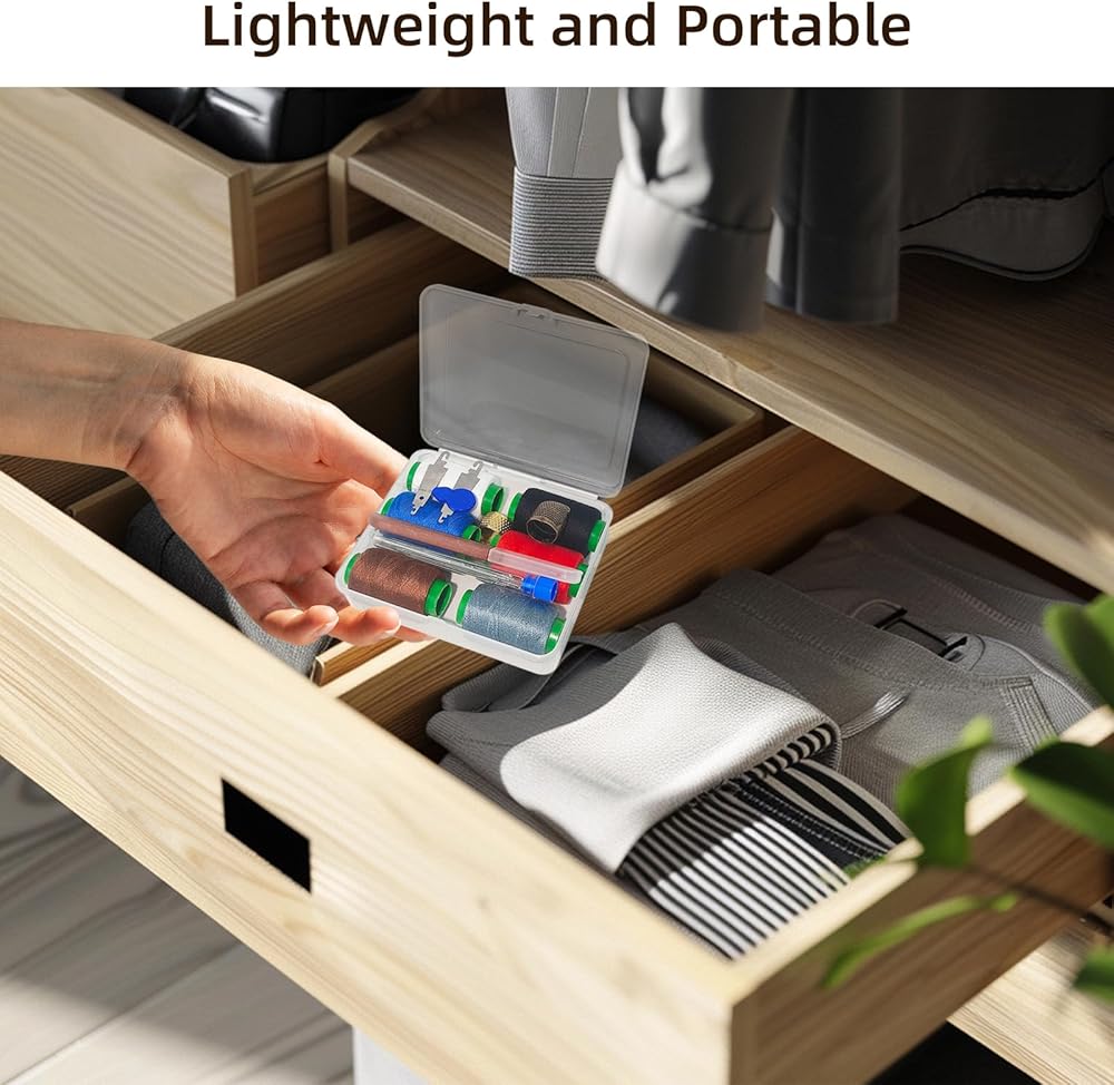 Steel Needle Sewing Kit: Stainless steel sewing kit's storage case accommodates all accessories. The fully transparent design allows to quickly and precisely retrieve the tools,return them to original spots afterward, keeping workspace tidy. For people use it outside,steel sewing needle kit is compact and portable,fitting easily into luggage. When traveling or on business trips,encounter loose threads or buttons on clothes,simply open sewing kit with steel needles to quickly fix problem