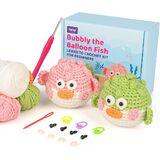 Totiro Crochet Kit for Beginners, Balloon Fish Amigurumi Starter Kit, Easy DIY Craft Set with Step-by-Step Video Tutorials, 2 Pack Crochet Pattern Learning Kit for Teens Adults Birthday Gift