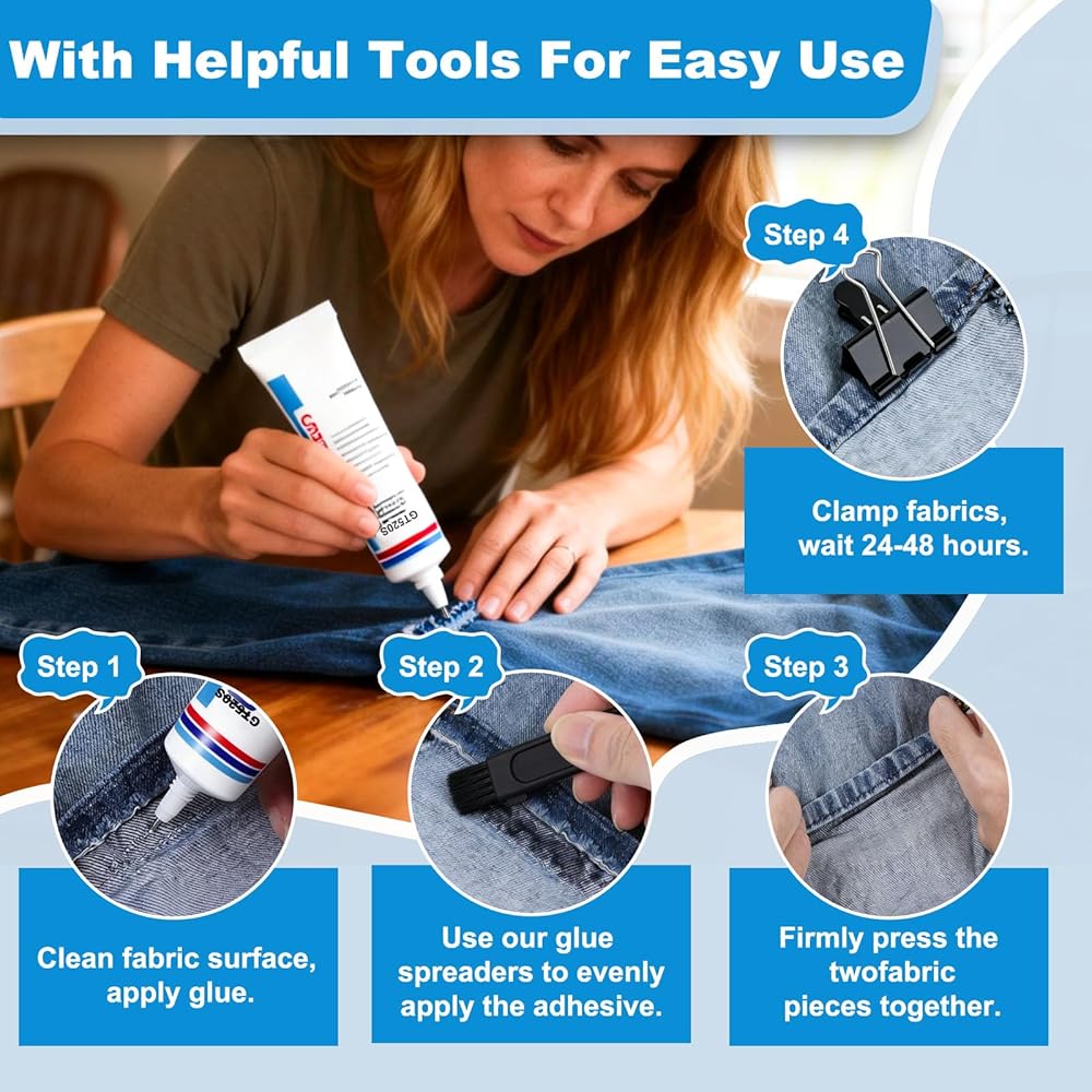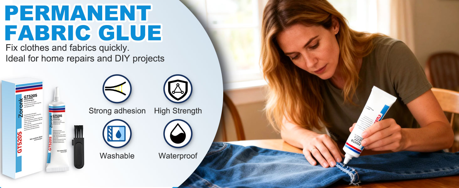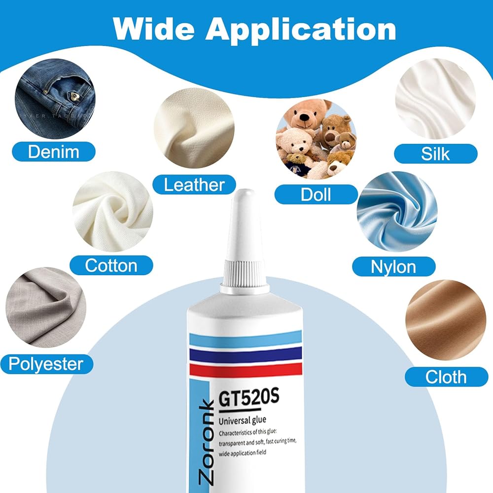 【Fabric Specific Glue】60ml Sufficient Capacity to Meet Daily Repair and DIY Creation Needs. Upgraded High-Strength Formula with Strong and Long-Lasting Adhesion. After curing, it is soft and elastic, non-hard and non-abrasive to the touch, machine washable and rub-resistant, not easy to yellow or peel off, with excellent durability.