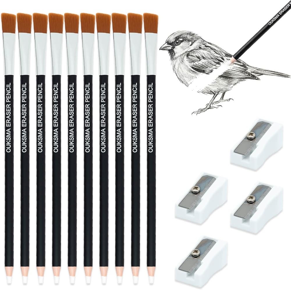 Multi-Function Artist Toolset: Includes precision eraser pencils, soft cleaning brush, and dedicated sharpener—designed for fine erasing, highlighting, dust removal, and shaping detailed textures in all types of artwork.