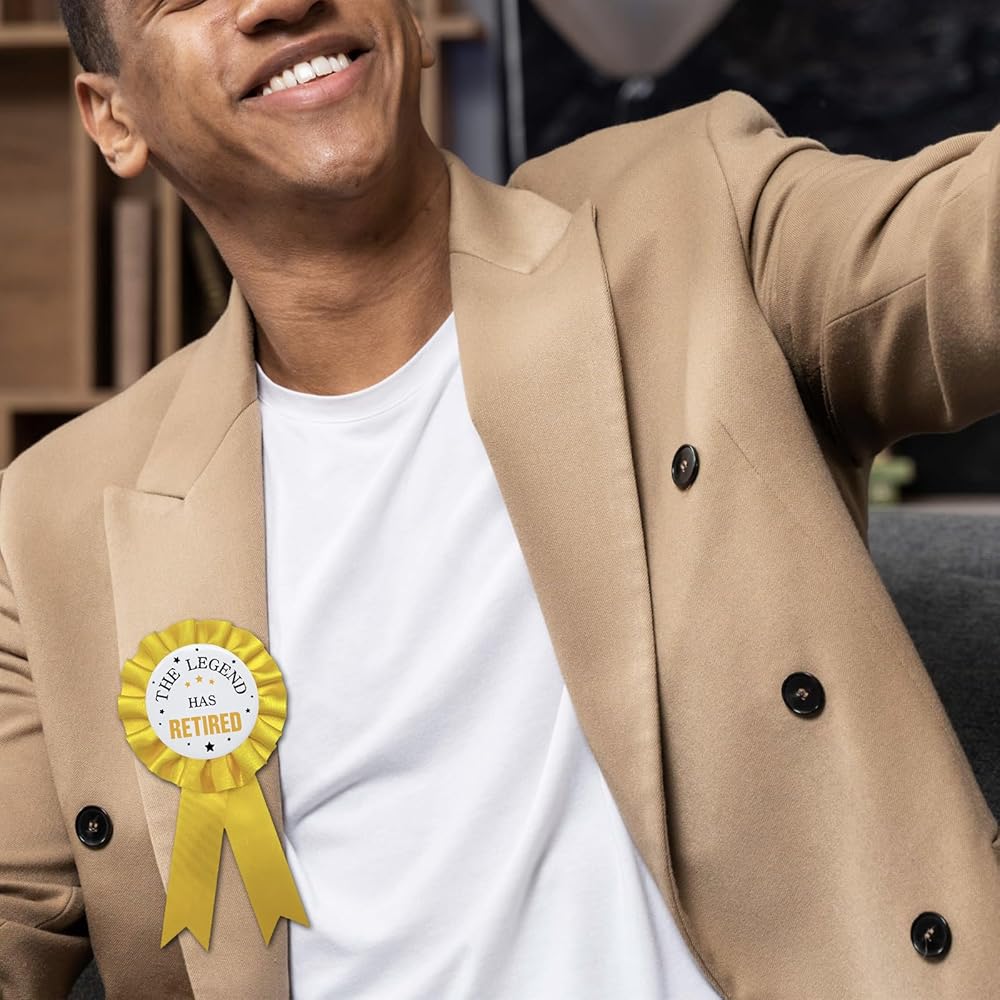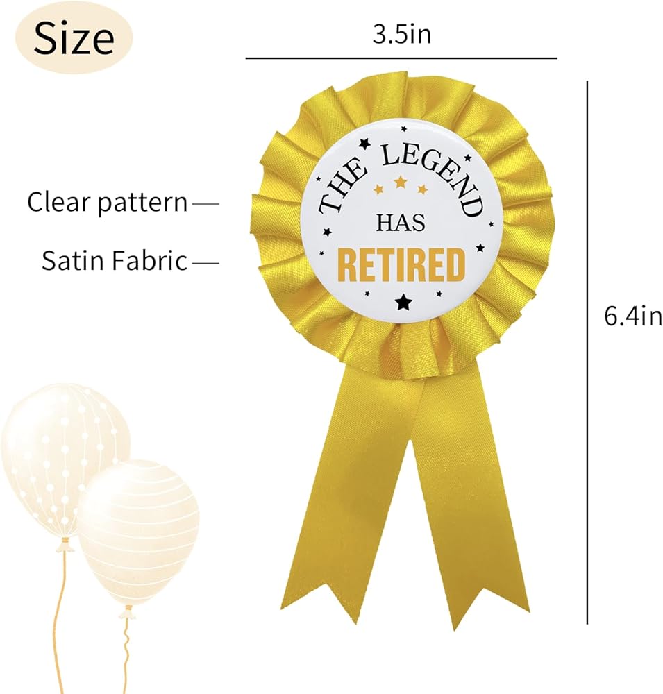 PACKAGE INCLUDES: 1THE LEGEND HAS RETIRED pin. The badge is printed with the words "THE LEGEND HAS RETIRED" to add atmosphere and joy to the party.