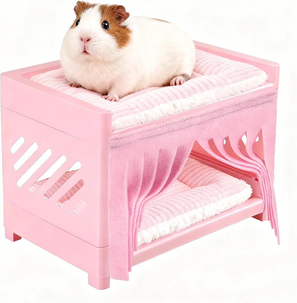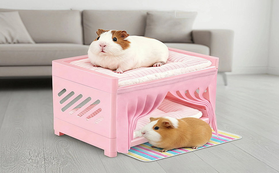 Hygienic Double-Layer Resting Space: Two-level design keeps sleeping areas elevated and separated, helping maintain a cleaner, more organized guinea pig cage environment
