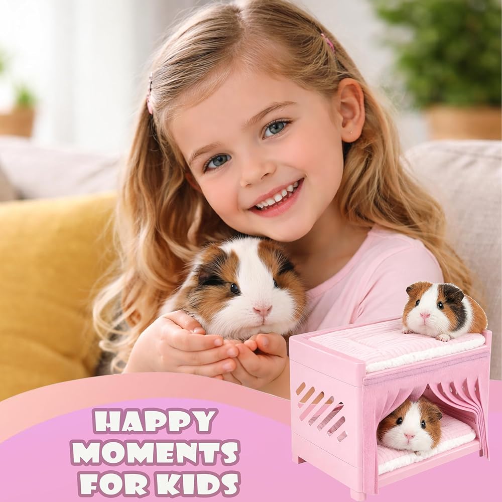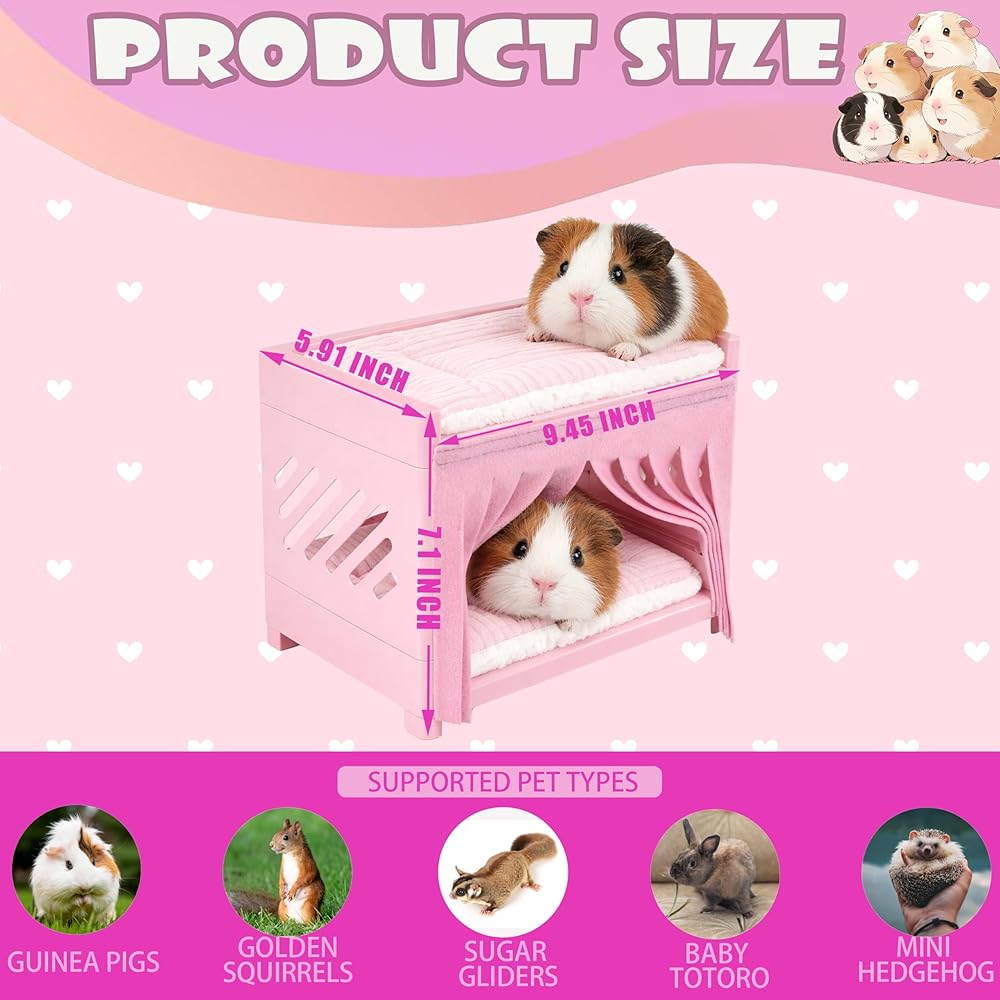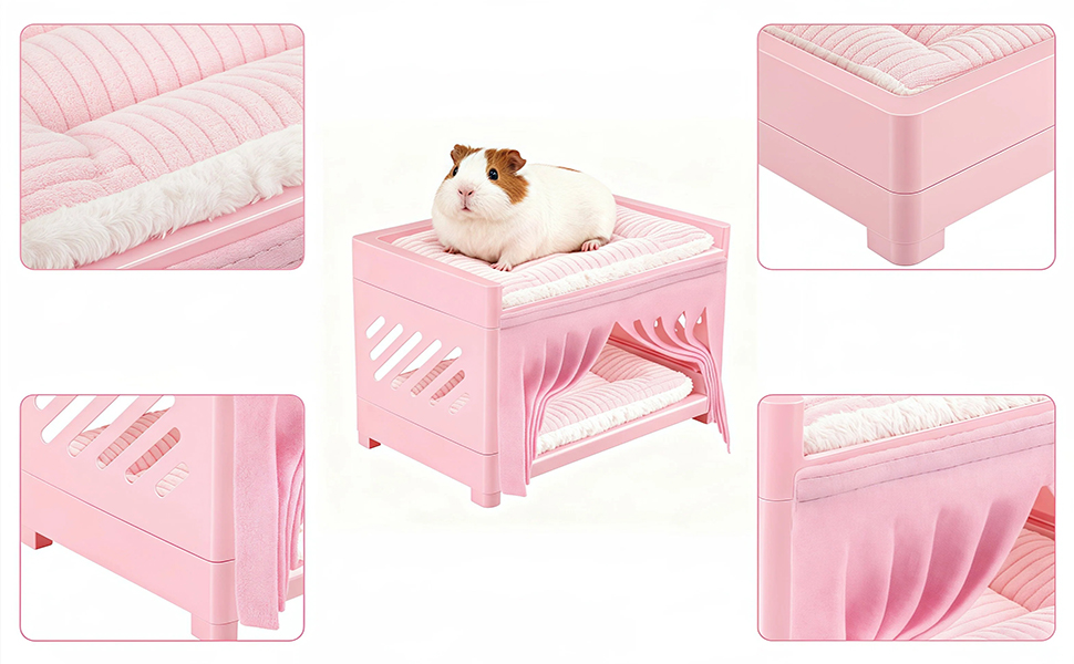 Enhanced Double-Deck Guinea Pig Bed: Double-deck guinea pig bunk bed creates extra sleeping space and serves as a fun small animal hideout, perfect for guinea pigs, hamsters, chinchillas, and other small pets needing a cozy rest area.