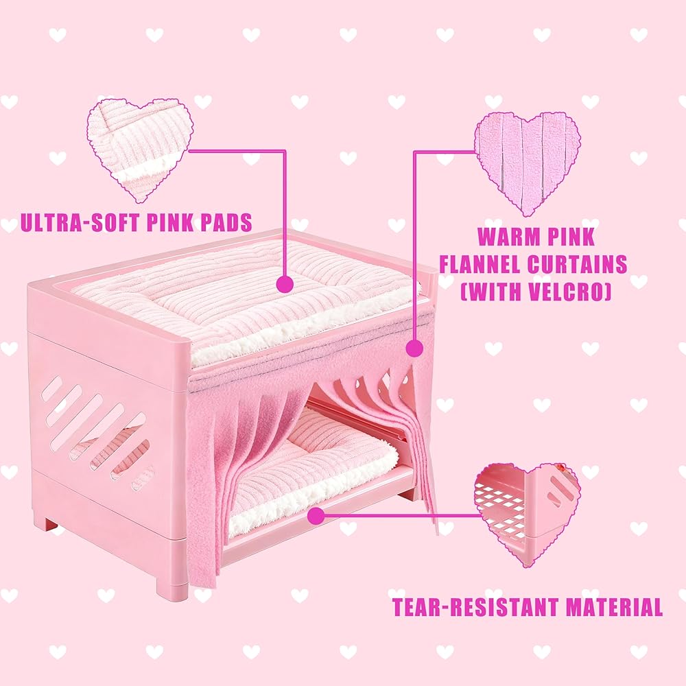Includes 2 Mats & Tassel Curtains: Guinea pig bed set includes 2 washable mats and 2 tassel curtains, adding comfort, warmth, and privacy. Ideal cage accessory for enriching guinea pig habitat or small animal cage setups.