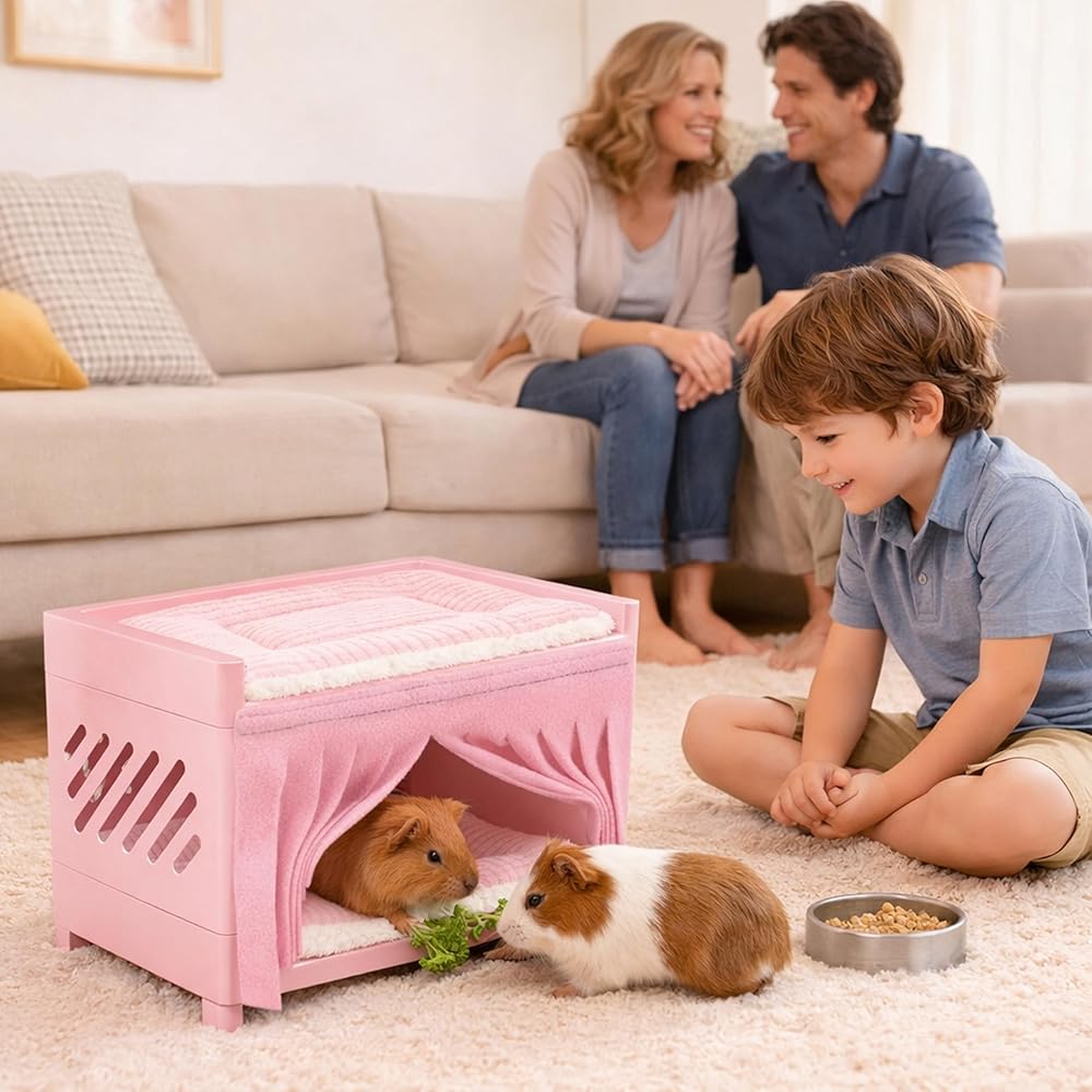 Easy to Clean & Maintain: Removable mats and simple structure make this guinea pig bed fast to clean. Machine-washable pads help keep your small animal hideout hygienic and odor-free with minimal effort.
