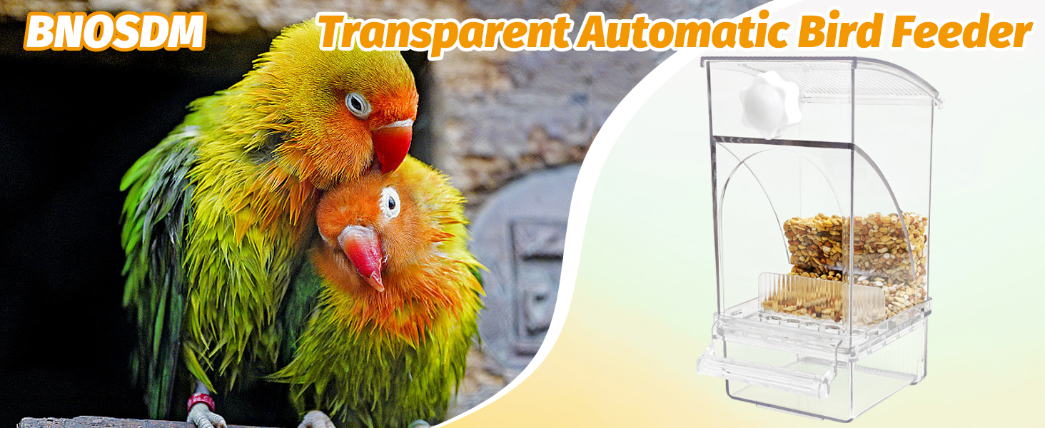 Automatic Bird Feeder: BNOSDM parrot feeder features an internal sloped design that allows seeds to fall freely without getting stuck. Acrylic bird seed feeder is perfect for busy pet owners, making it easy to feed your feathered friends