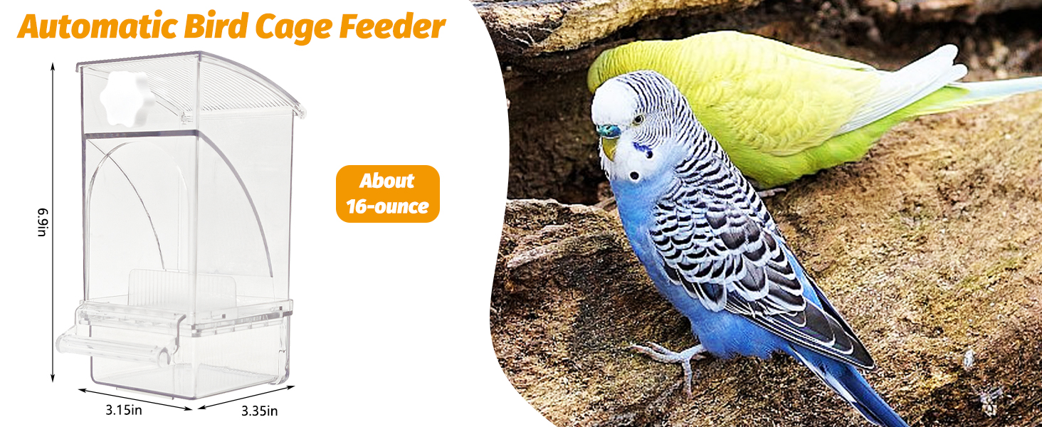 Applicable Object: BNOSDM clear plastic feeder measures 3.15×3.35×6.9 inches and holds 16 ounces of seed—enough for about a week. You can leave home without worrying about your birds going hungry. Transparent bird feeder is ideal for indoor birds, especially parakeet, budgies, canaries, cockatoos, and lovebirds