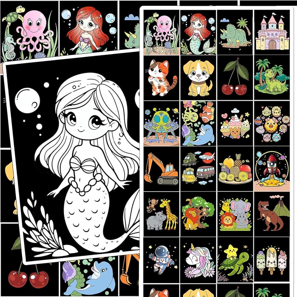 Perfect Size: Each Velvet Coloring Poster measures approximately 7.87 x 11.02 inches (20 x 28 cm), making them ideal for easy handling by kids and adults alike. Their convenient size ensures they can be enjoyed during travel or at home without taking up too much space.