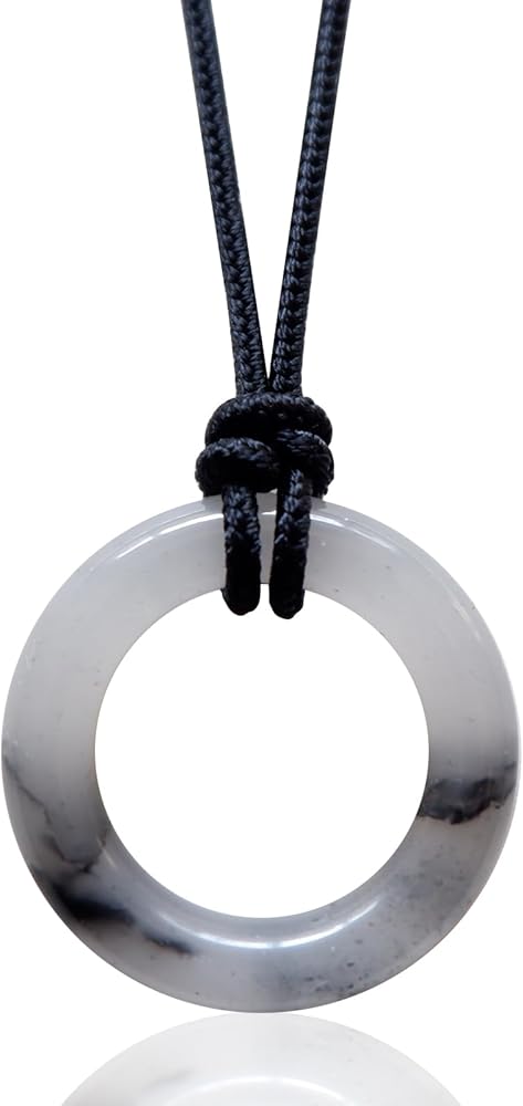 Natural Jade Ring Pendant Chinese Ink Painting Black And White Landscape Jade Ring Mobile Phone Ring Zen Meditation Necklace Men's Women's Sweater Chains Jade Key Ornament Business Gift
