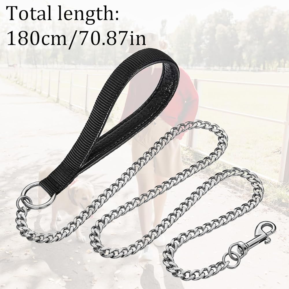 Comfortable Handling: Featuring a soft padded handle, this 6ft chain dog leash provides a comfortable grip during long walks or training sessions, making it perfect for medium to big dogs.
