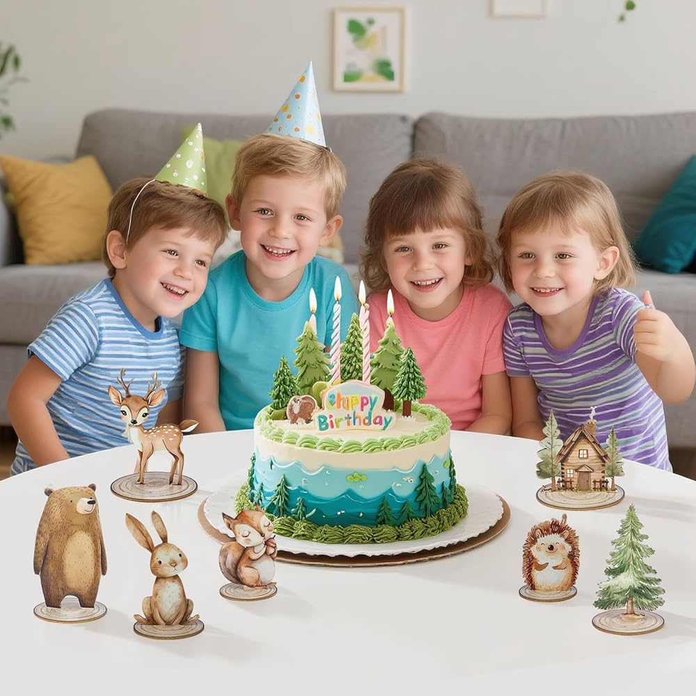 【Charming and Diverse Designs】The set features 12 distinct and delightful forest-themed designs. It includes a variety of animals such as the sly fox, the cute rabbit, the majestic bear, and the playful squirrel. Additionally, there are charming representations of a cozy wooden house nestled among trees and a tall, lush-green pine tree.