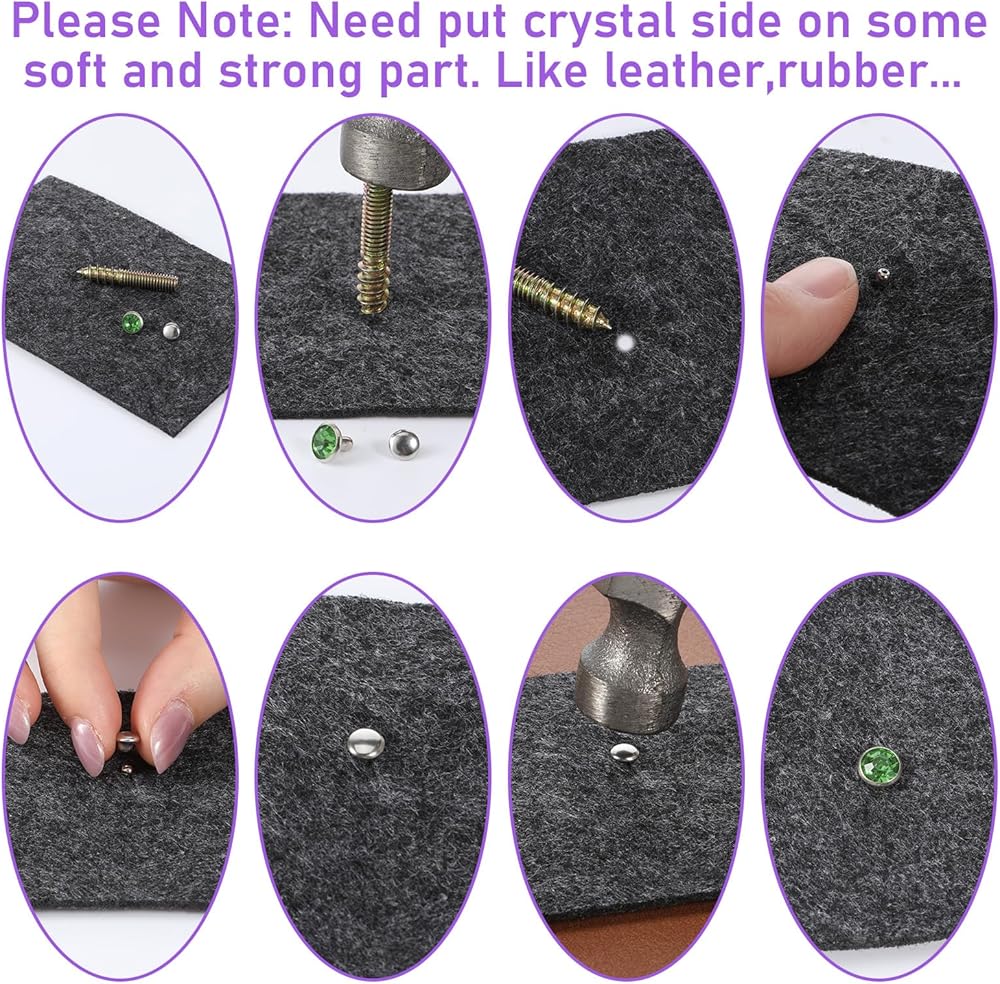 Superior Quality: These colorful leather rivets are made of high-quality crystal and metal. The crystal surface is smooth and shiny, providing excellent decorative effect. They will not easily fade or deform during use