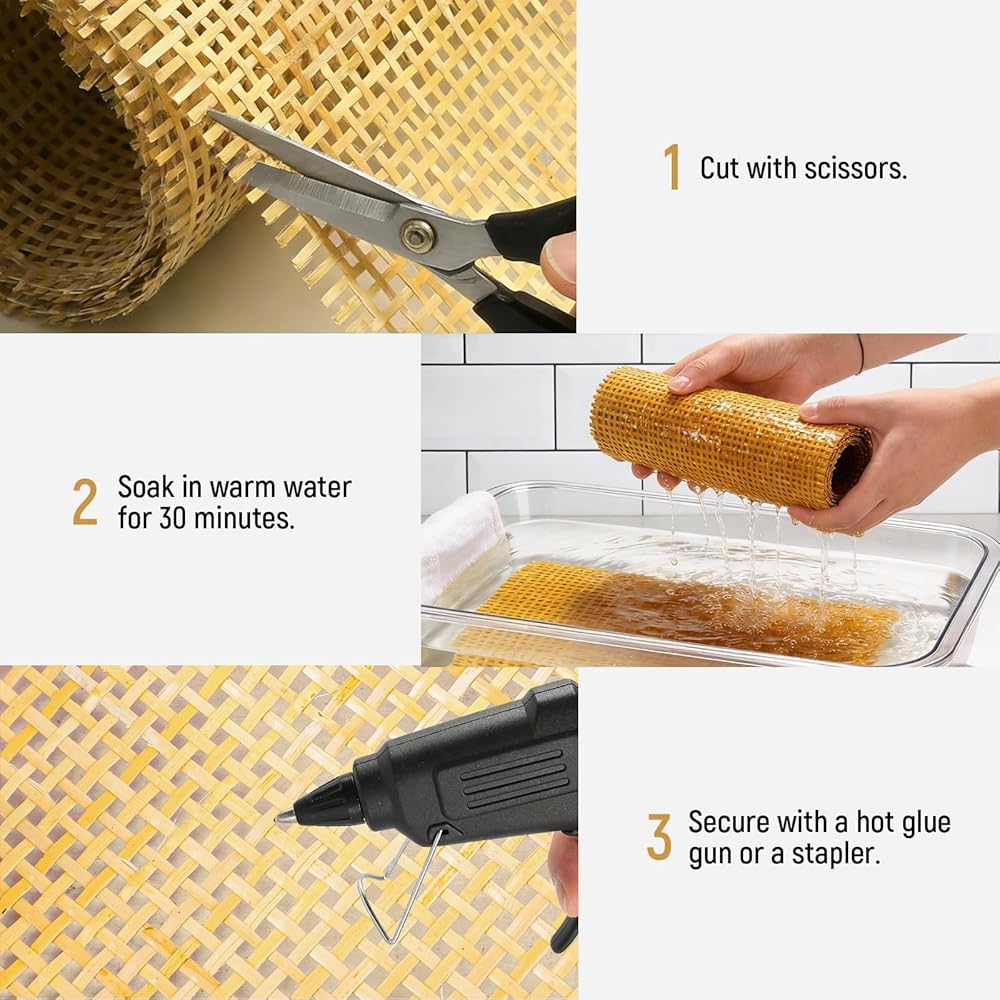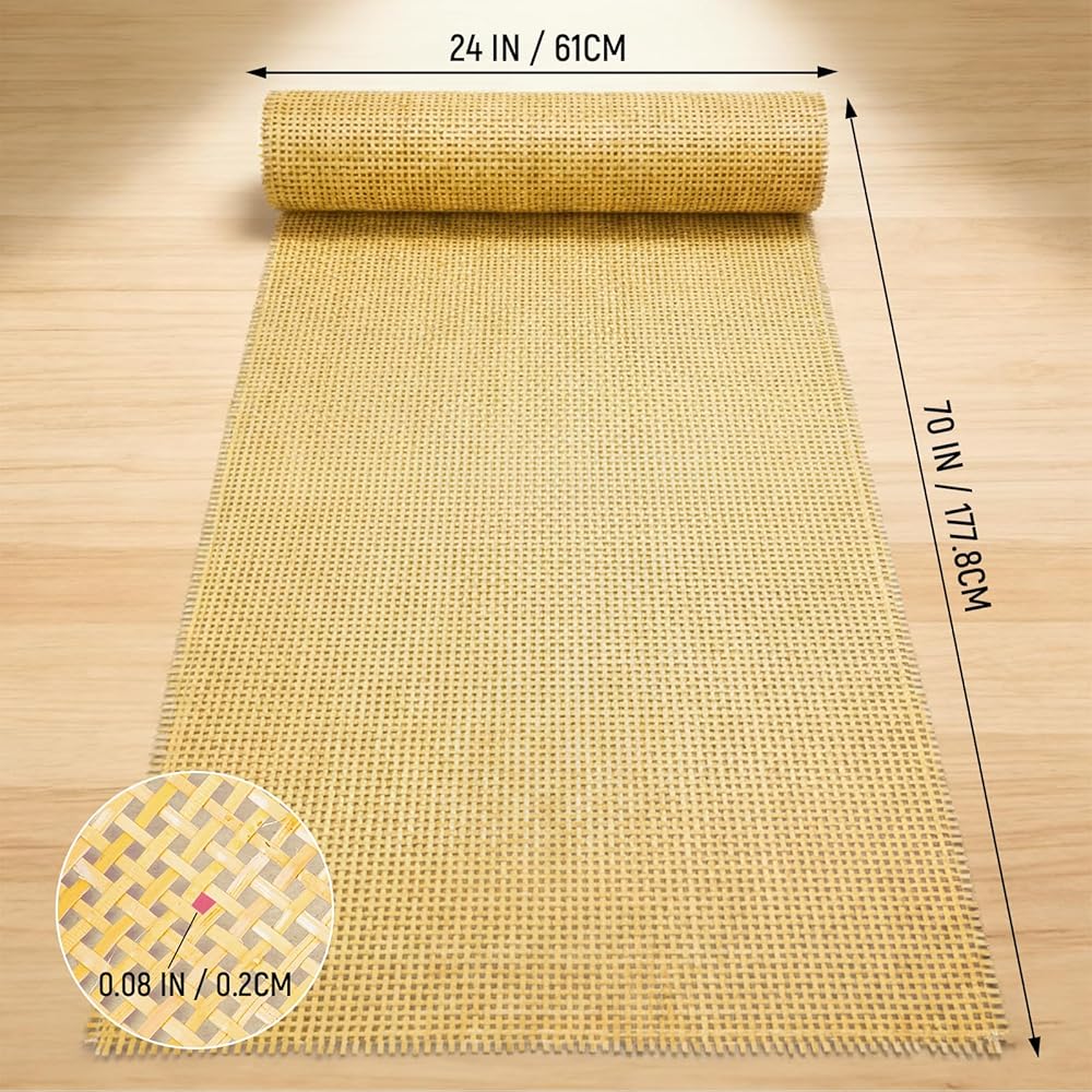 【Generous Size & Ready to Use】 Each roll measures 24 inches wide by 72 inches long (6 feet), offering ample material for small and large projects alike. You can easily cut it to custom sizes with scissors. Package includes 1 roll of natural rattan cane webbing.